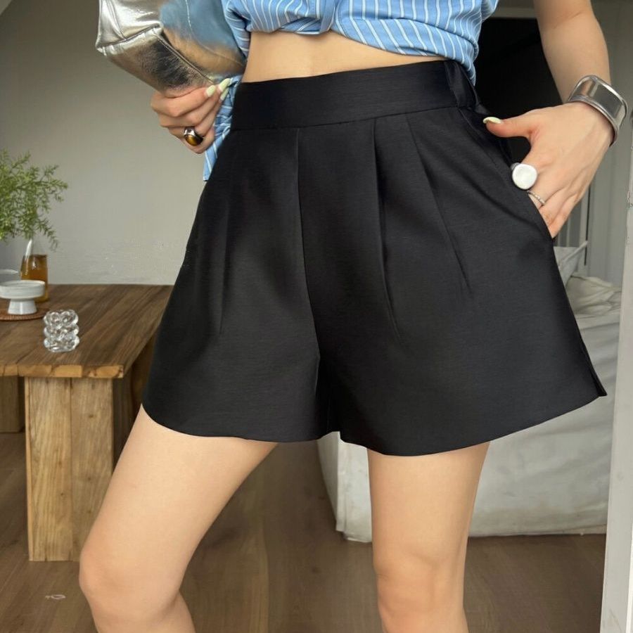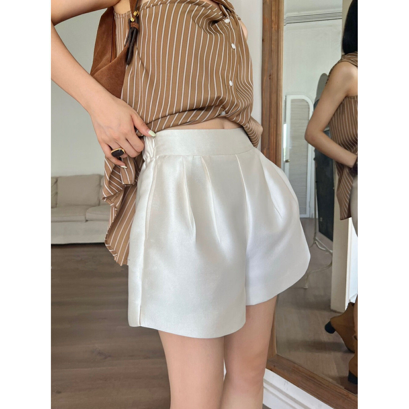 고급 드루핑 배 모양의 세트 넓은 다리 반바지 여성의 여름 얇은 느슨한 캐주얼 광택 높은 허리 A 자형 바지스토어 가기