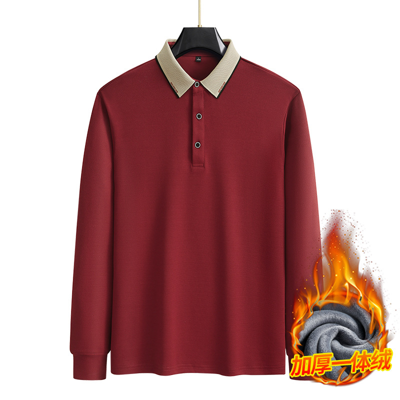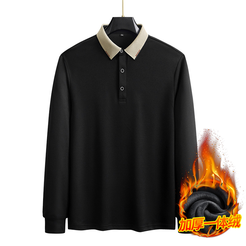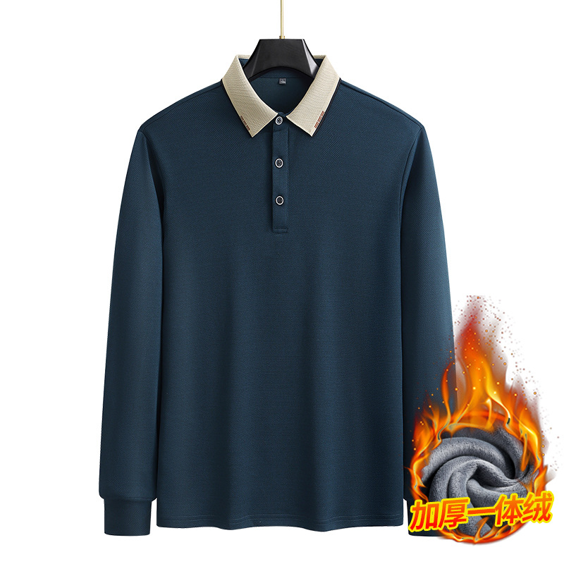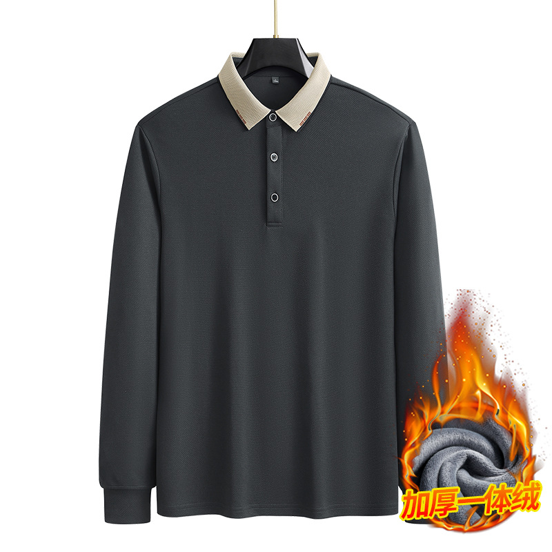가을과 겨울 남자 긴팔 아빠의 기모 폴로 셔츠 플러스 사이즈 옷깃 티셔츠 남자 올매치 캐주얼베이스 셔츠
