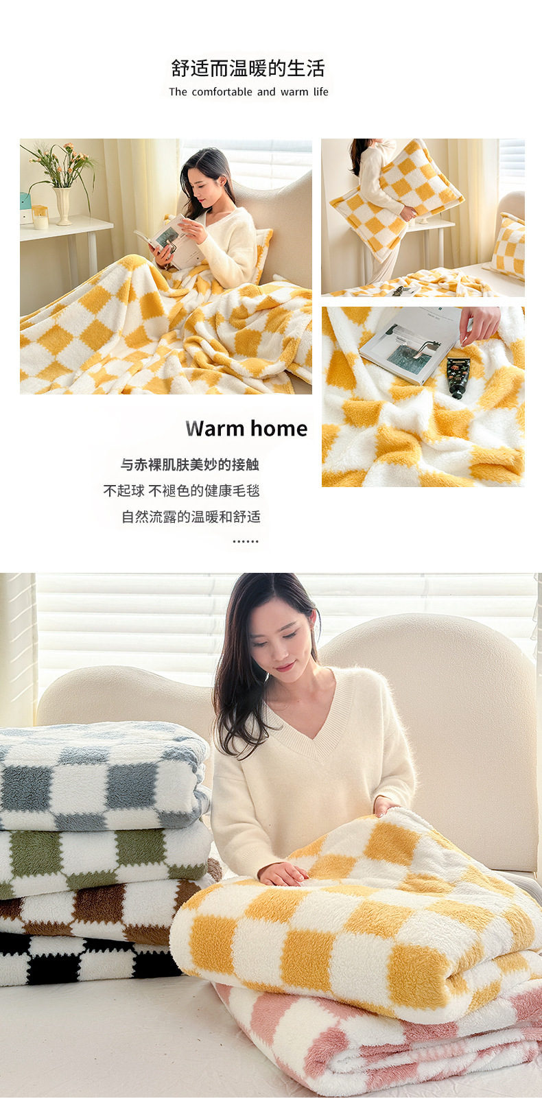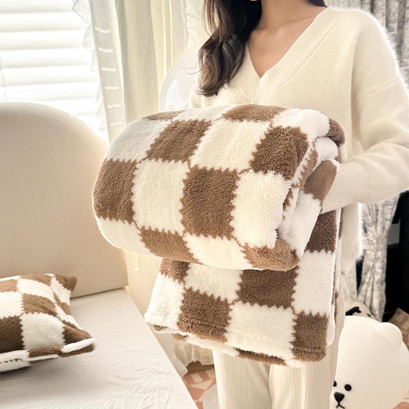 겨울 플란넬 담요 클래스 두꺼운 산호 양털 담요 체크 사무실 낮잠 담요 우유 양털 담요