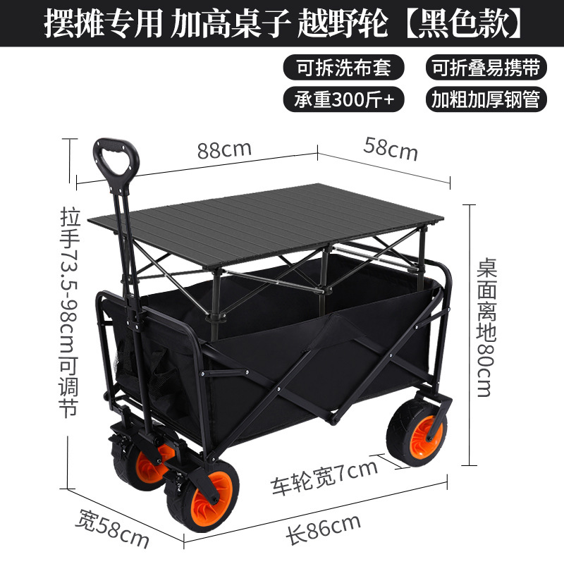 • ❤노점상 창업을 위한 첫 번째 선택❤8inch 오프로드 휠 카트 블랙 + 90 탄소강 테이블 블랙