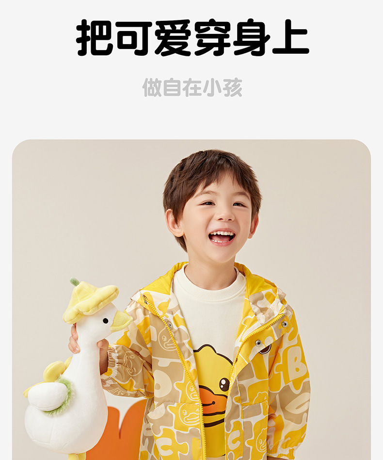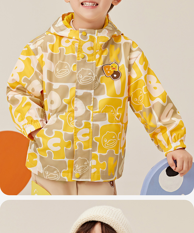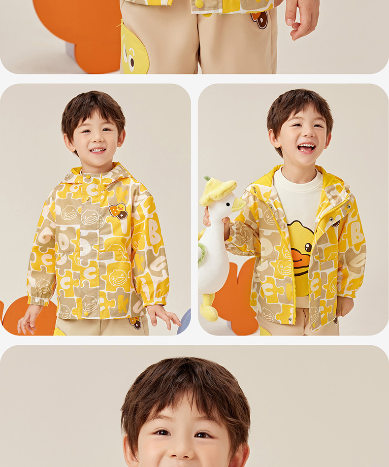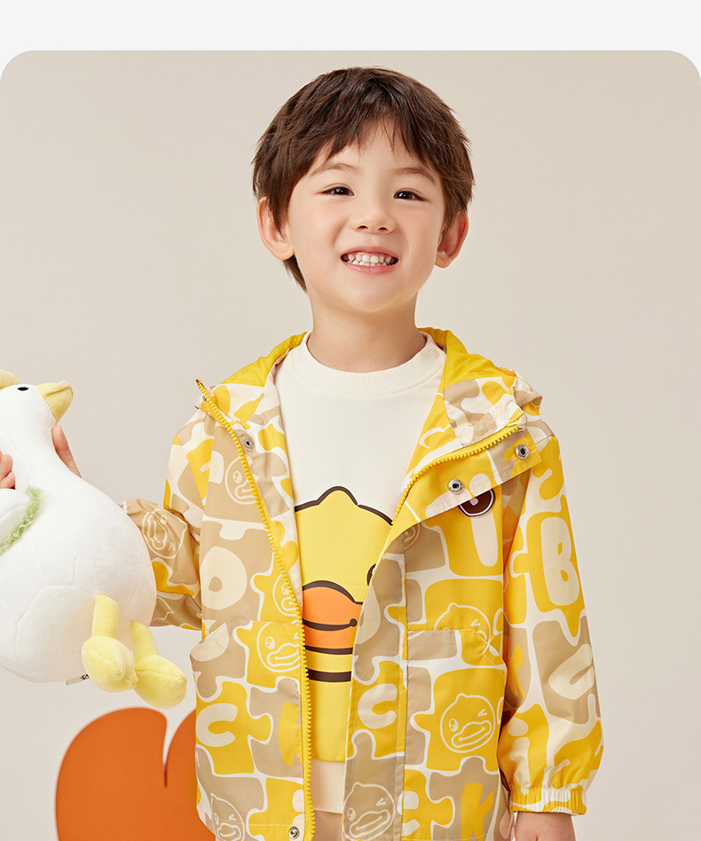 작은 노란색 오리 아동복 2024 가을 새 소년 자켓 아기 후드 코트 소년 만화 패션 윈드 브레이커스토어 가기