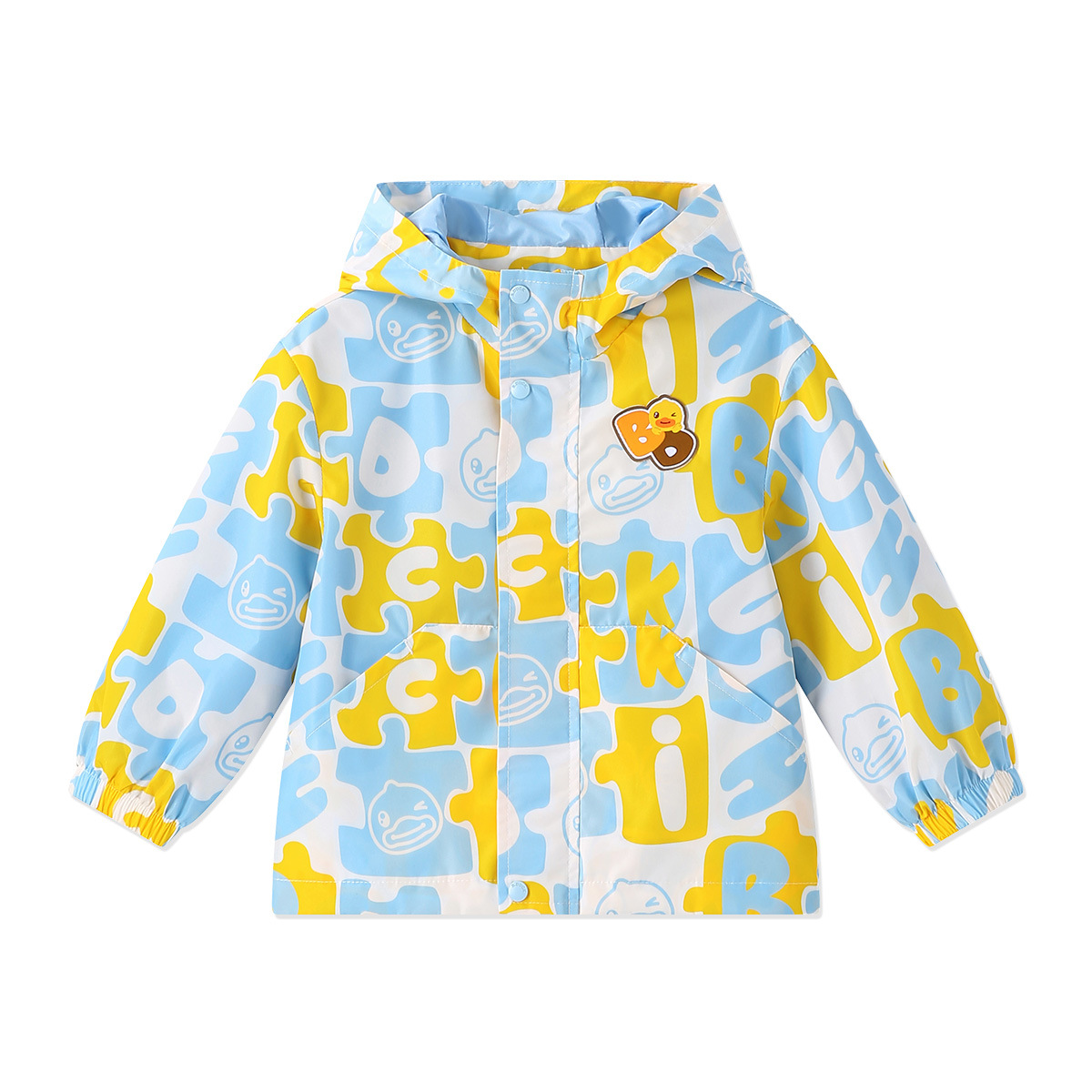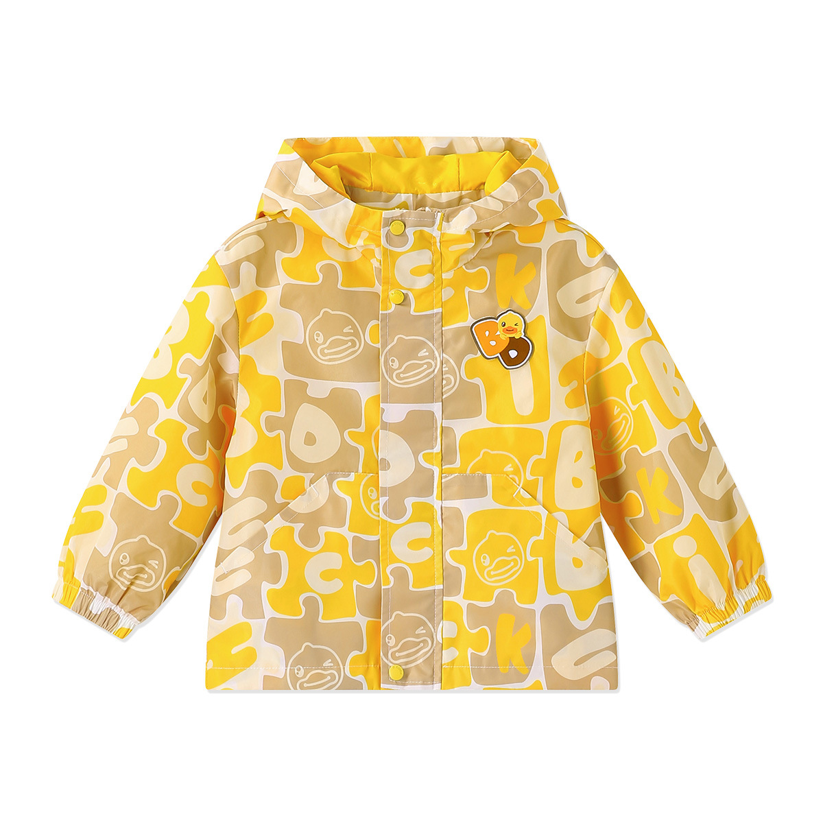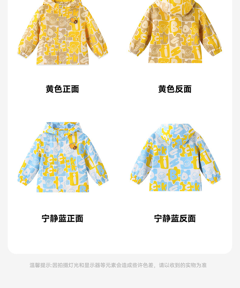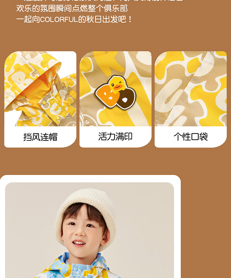 작은 노란색 오리 아동복 2024 가을 새 소년 자켓 아기 후드 코트 소년 만화 패션 윈드 브레이커