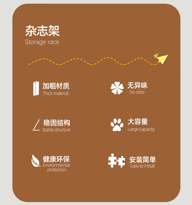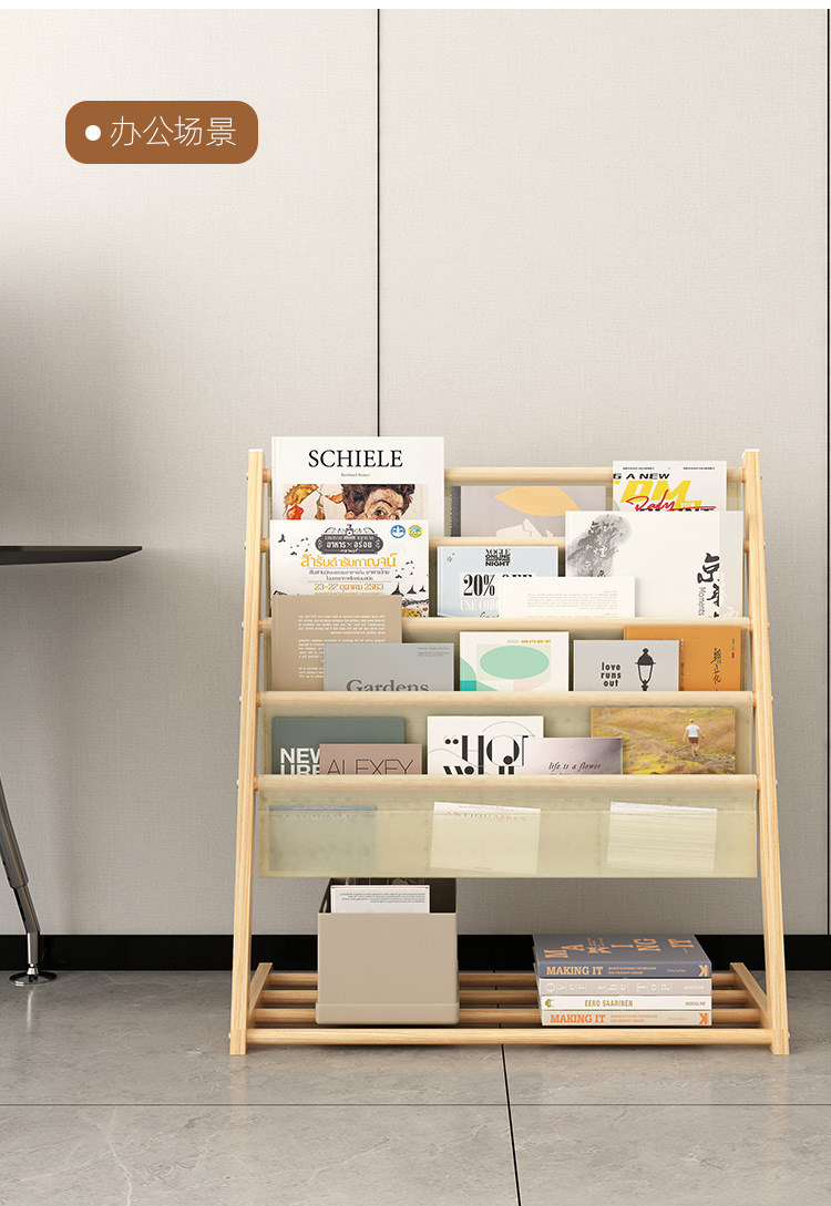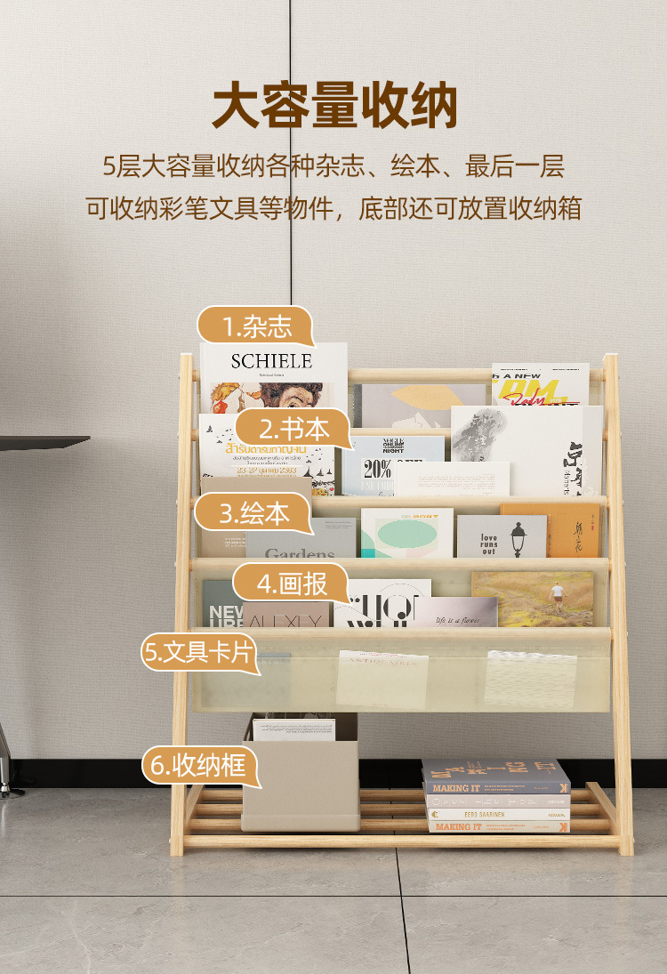 • 5단 흰색 천 잡지 꽂이가 있는 나뭇결