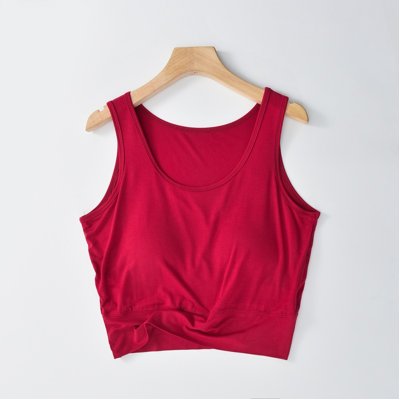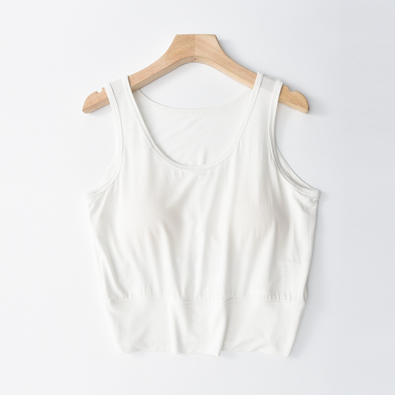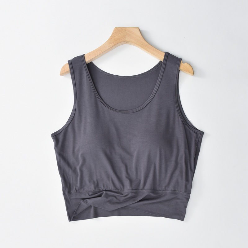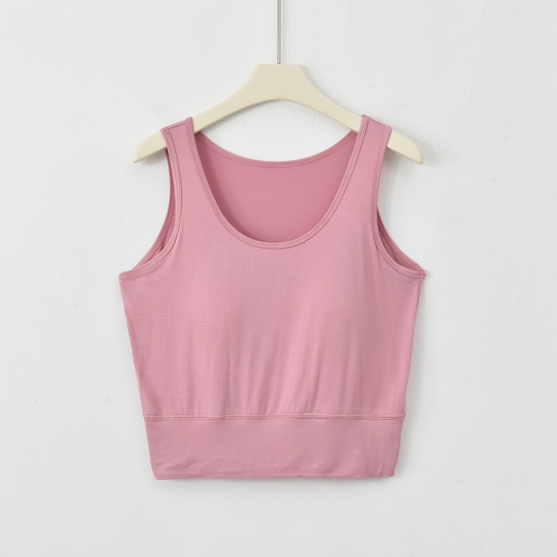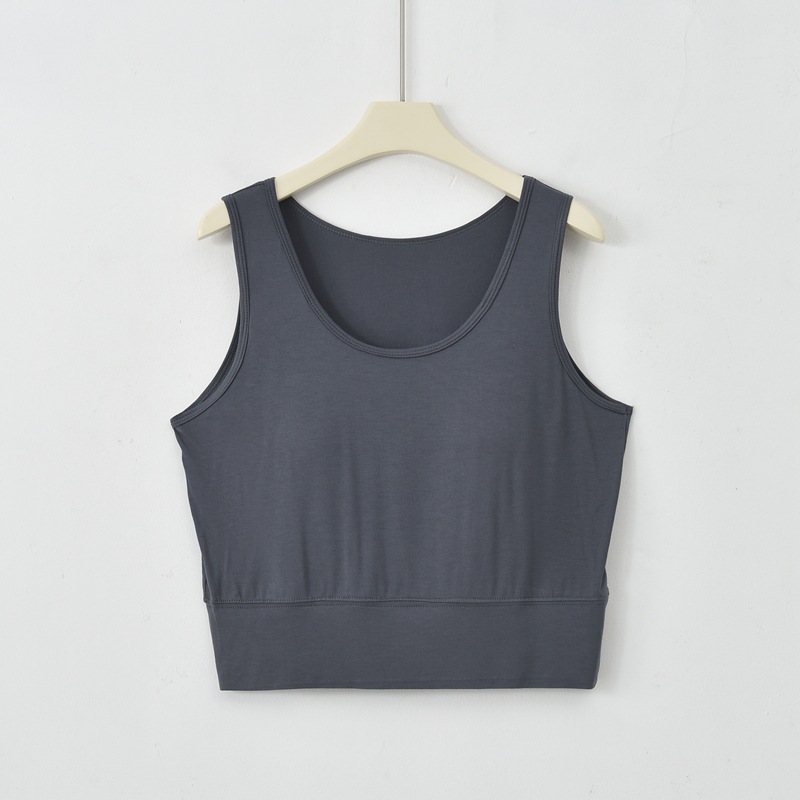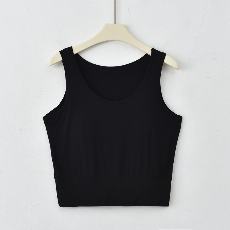 사계절 새로운 모달 가슴 패드 조끼 여성 크루 넥 스트레치 작은 슬링과 짧은 배꼽 셔츠 조끼