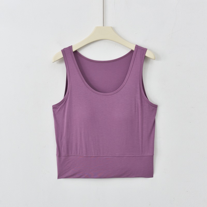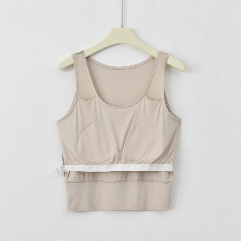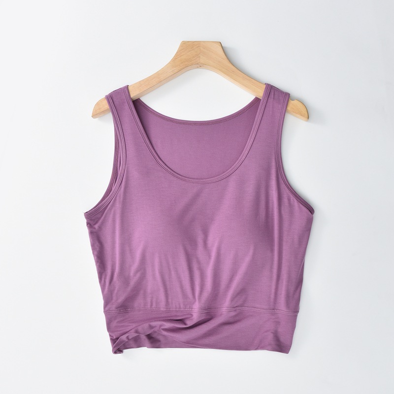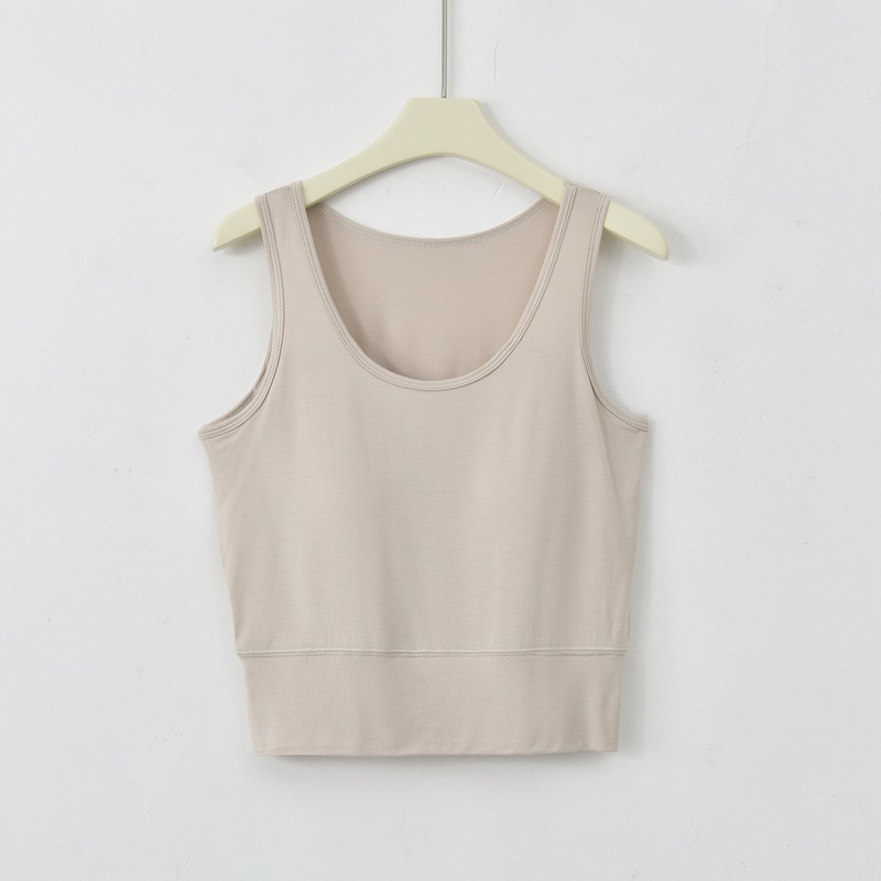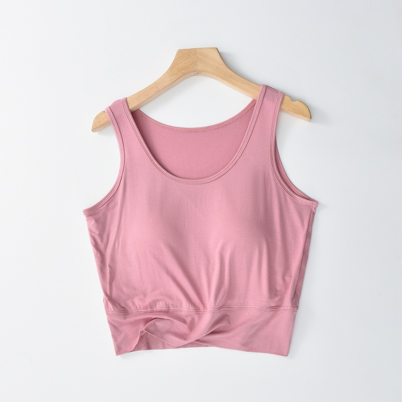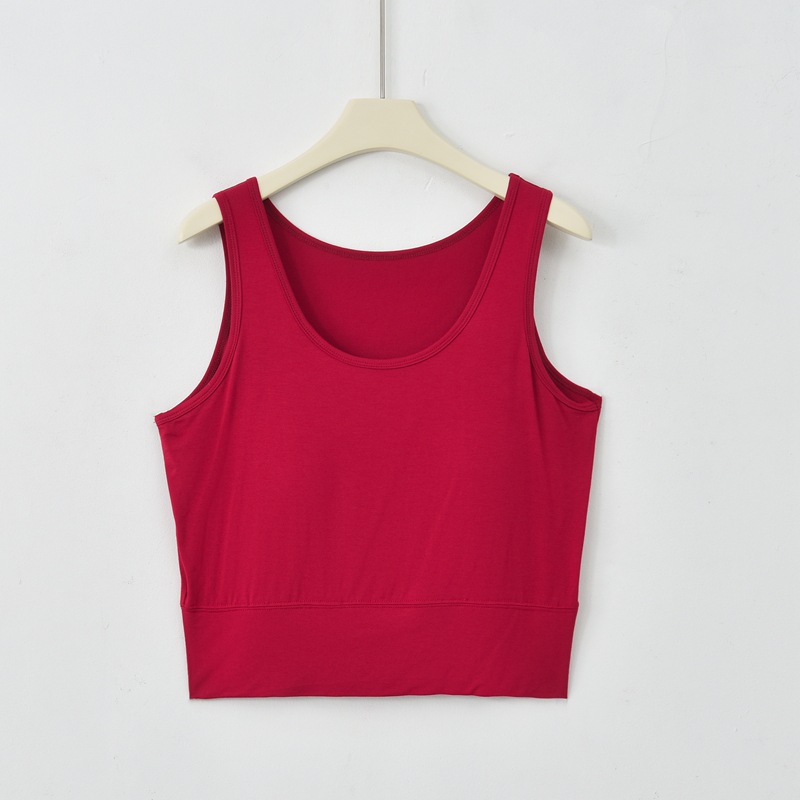 사계절 새로운 모달 가슴 패드 조끼 여성 크루 넥 스트레치 작은 슬링과 짧은 배꼽 셔츠 조끼