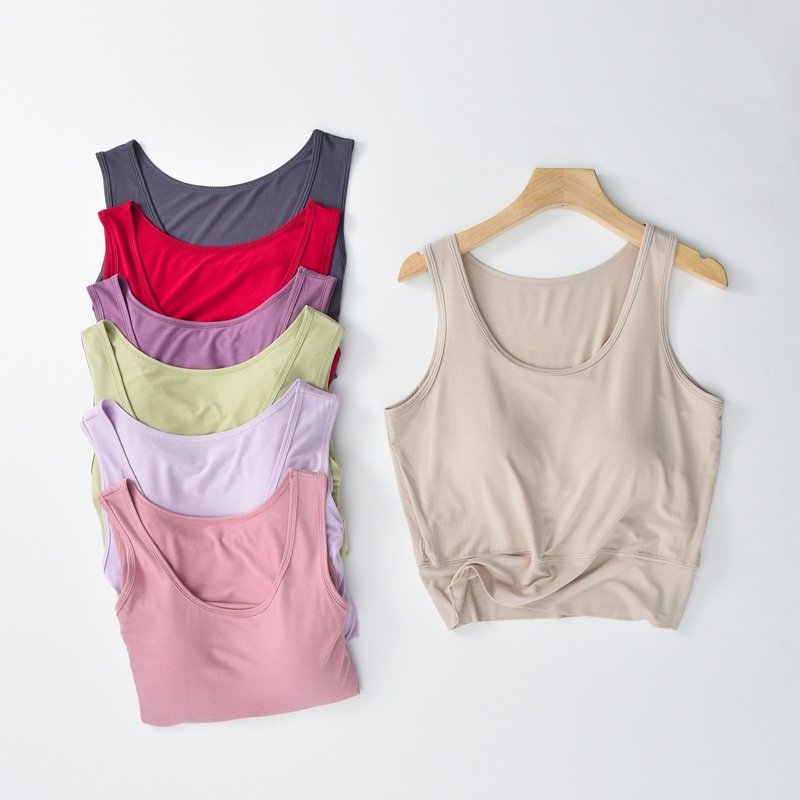 사계절 새로운 모달 가슴 패드 조끼 여성 크루 넥 스트레치 작은 슬링과 짧은 배꼽 셔츠 조끼스토어 가기