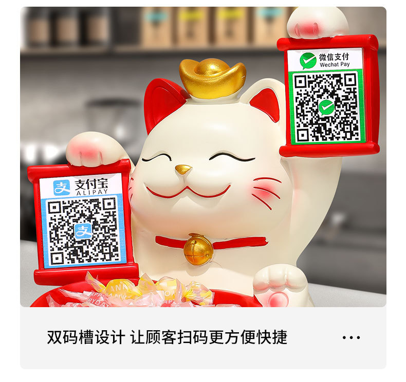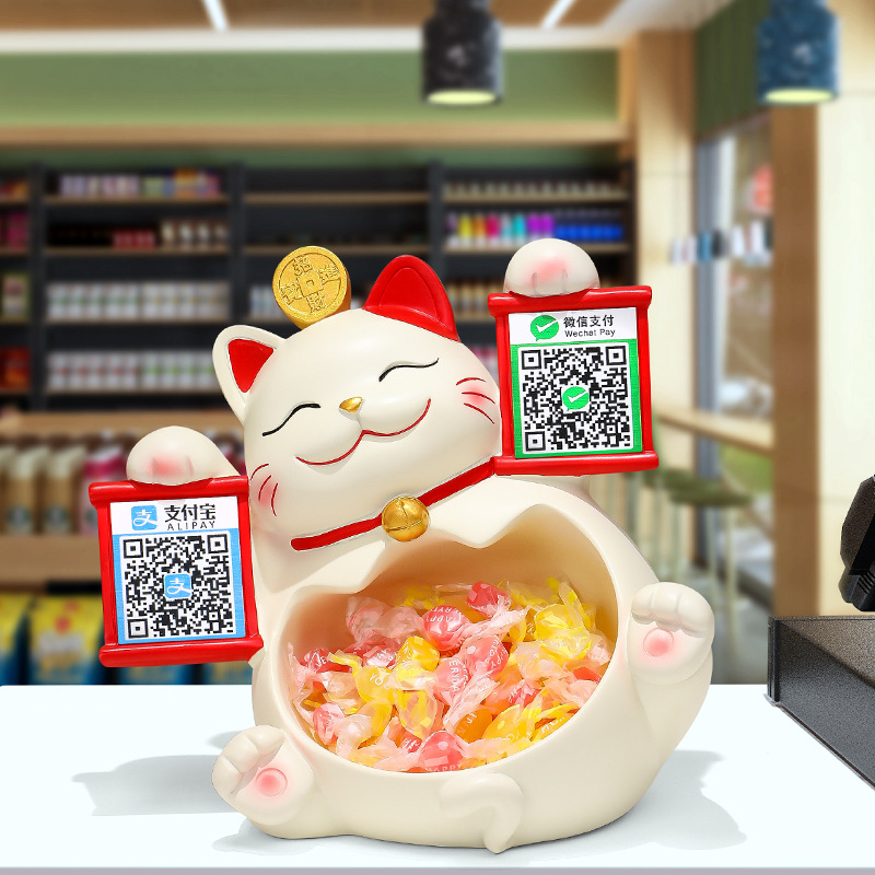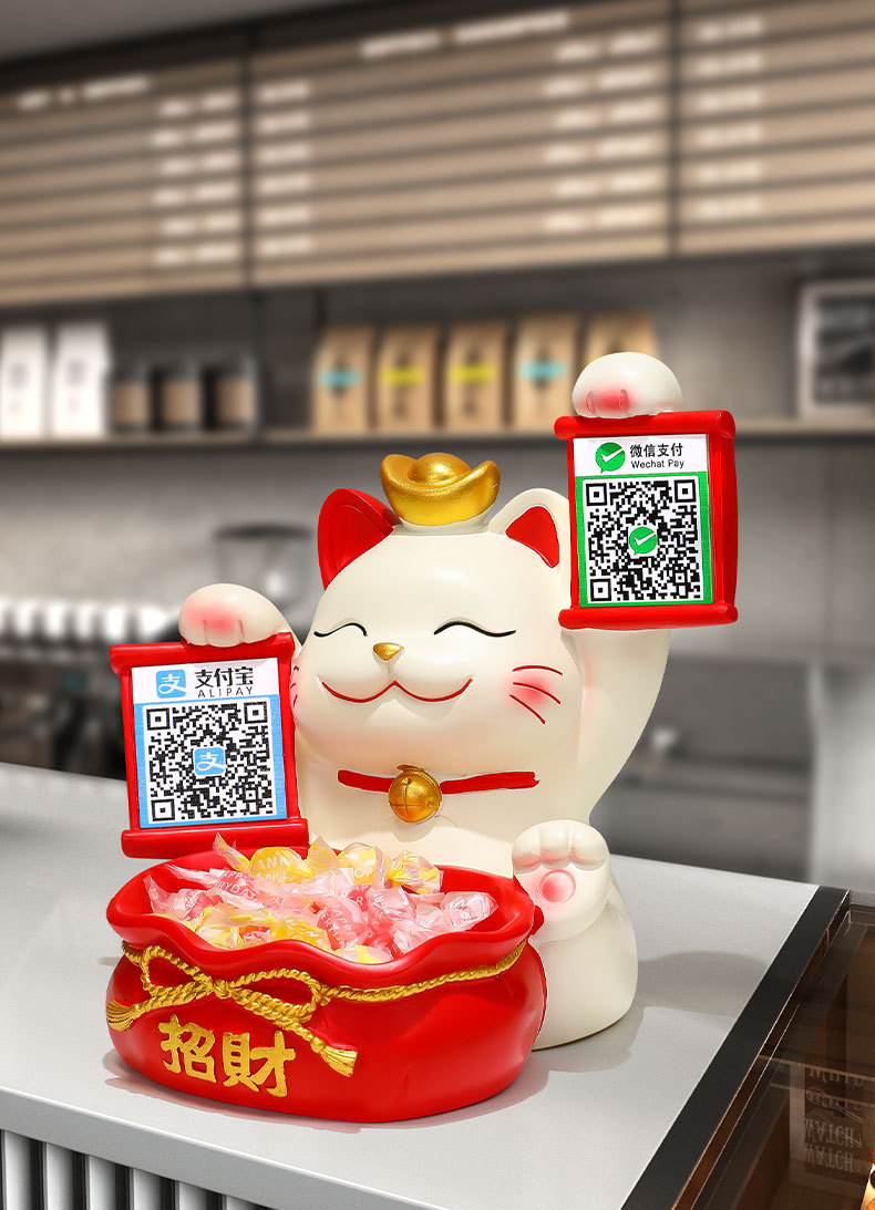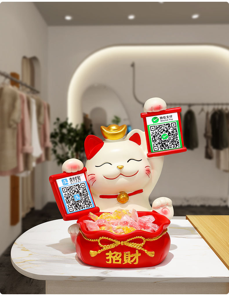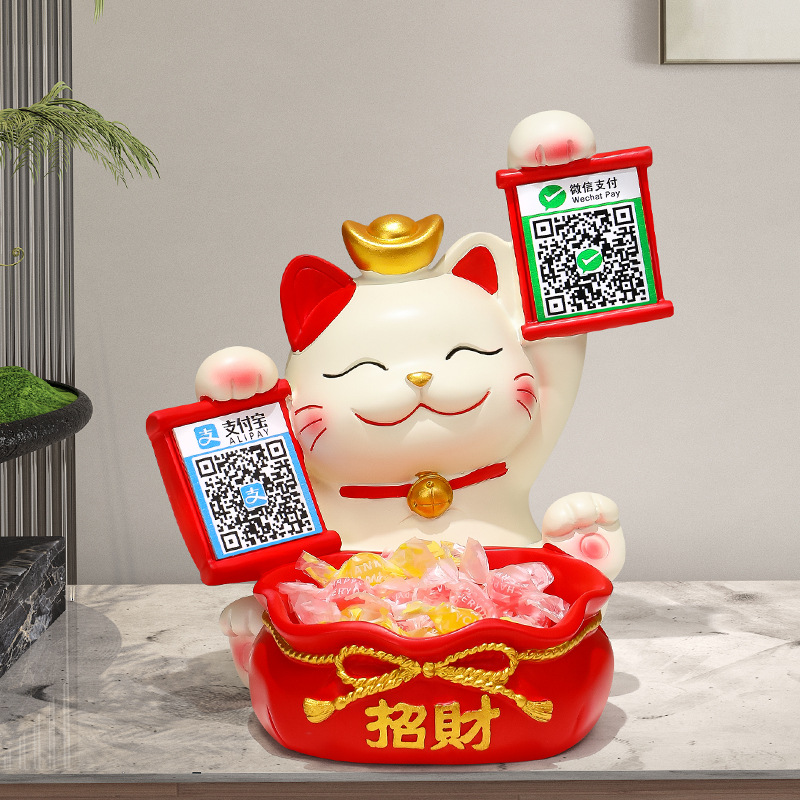 2 차원 코드 행운의 고양이 금전 등록기는 돈 코드 상점 프런트 데스크 장식품을 수집하는 큰 행운의 선물 새 가게 장식 장식품을 엽니 다.