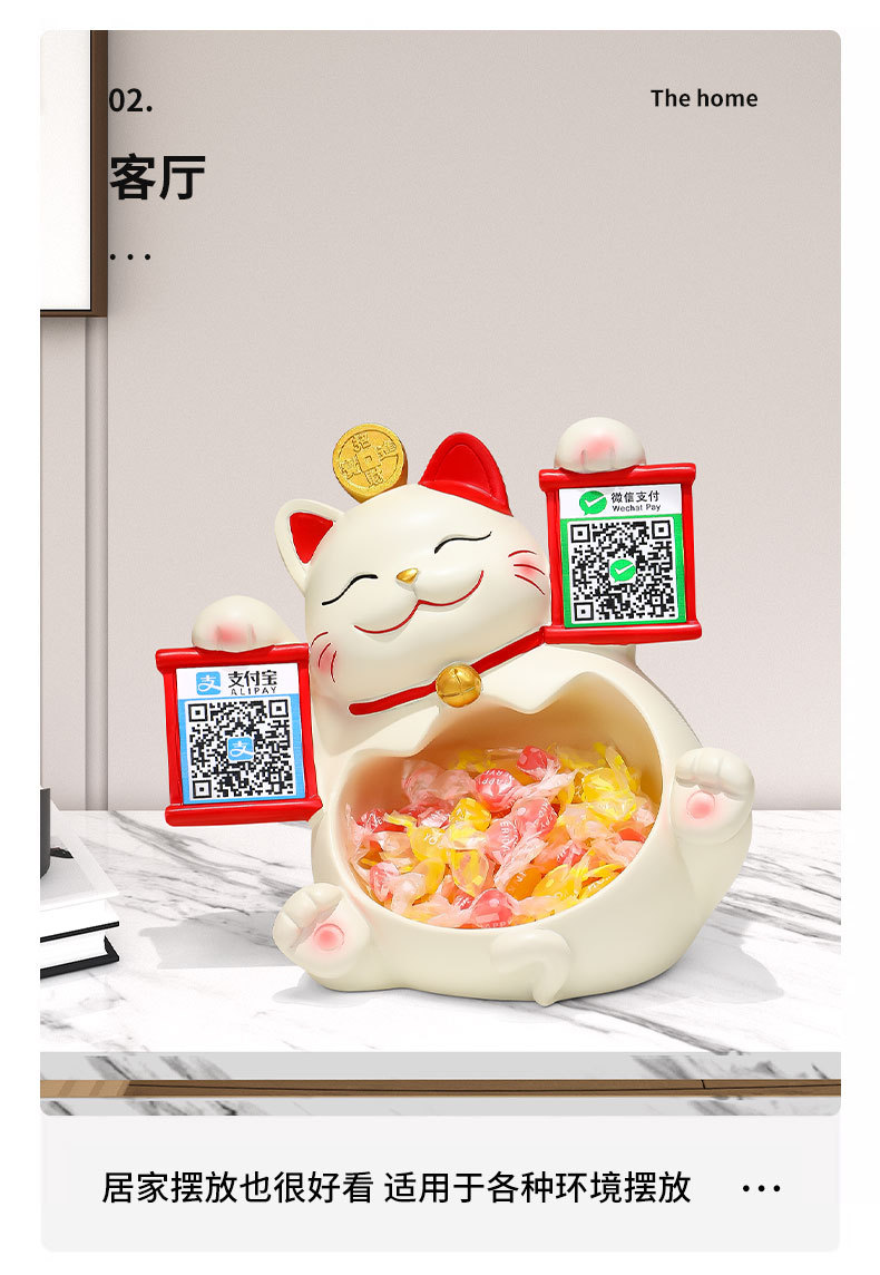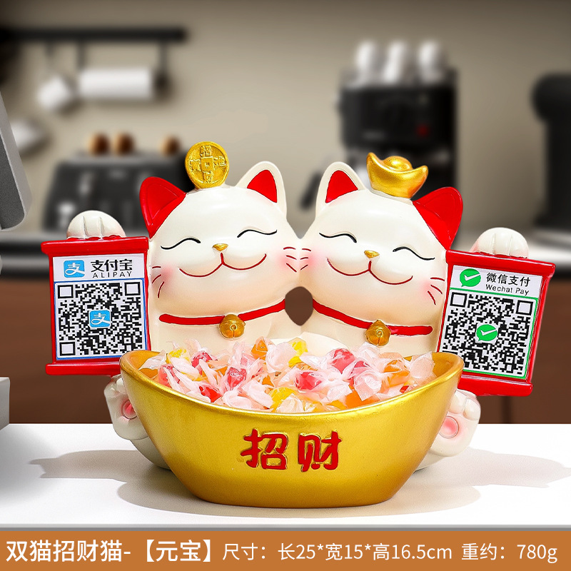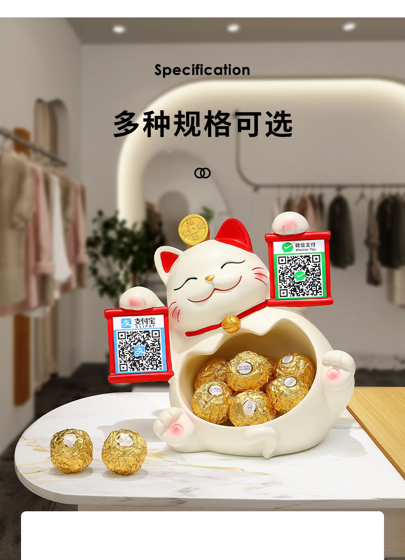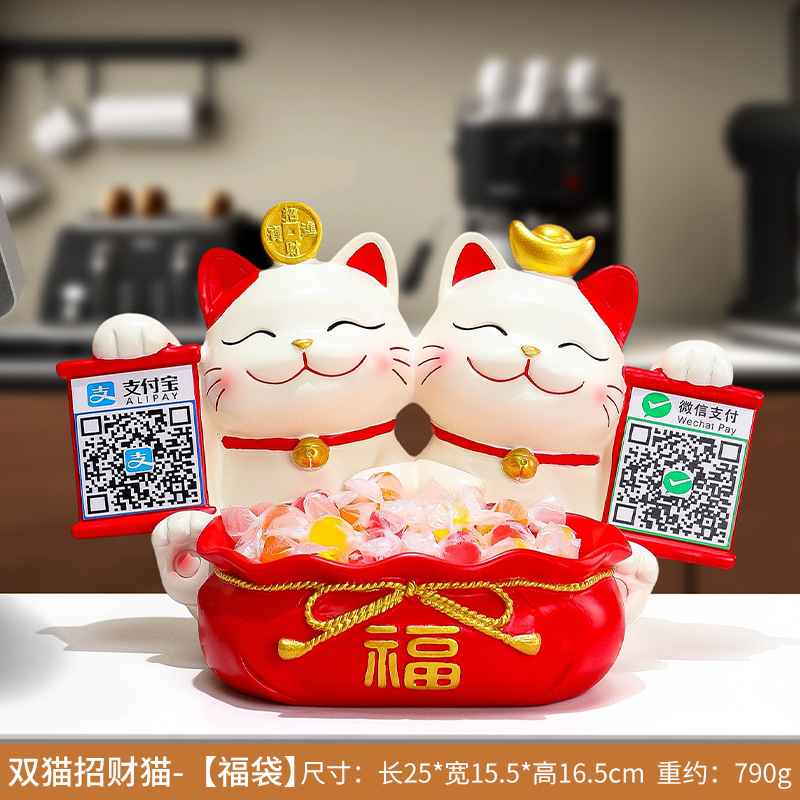 2 차원 코드 행운의 고양이 금전 등록기는 돈 코드 상점 프런트 데스크 장식품을 수집하는 큰 행운의 선물 새 가게 장식 장식품을 엽니 다.
