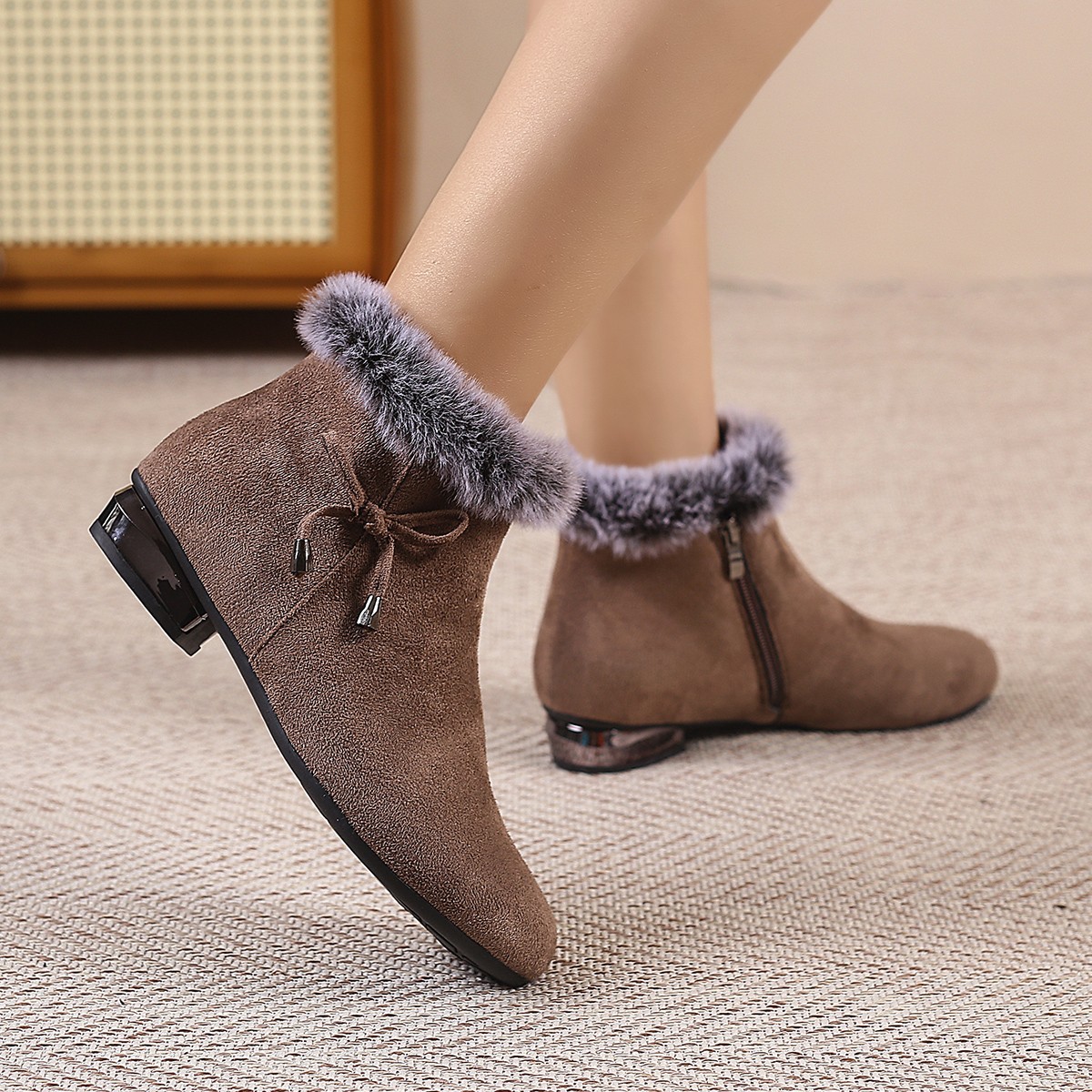 2024 가을과 겨울 새로운 짧은 부츠 여성용 두꺼운 뒤꿈치 기모 면화 신발 패션 라운드 헤드 플랫 힐 플러스 사이즈 여성용 부츠 따뜻한 두꺼운