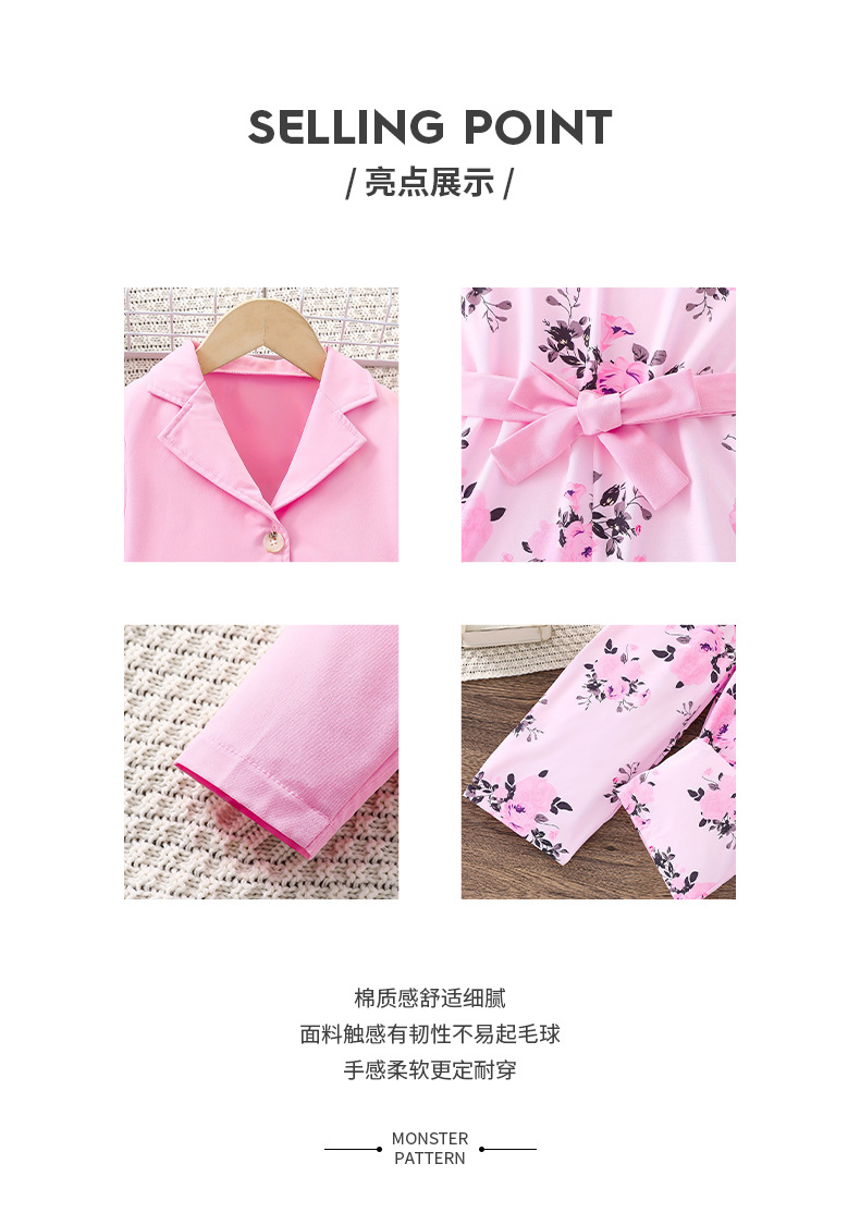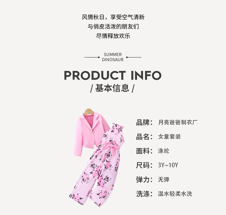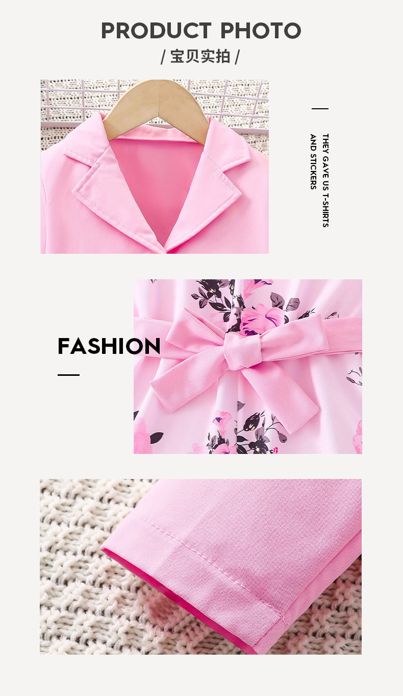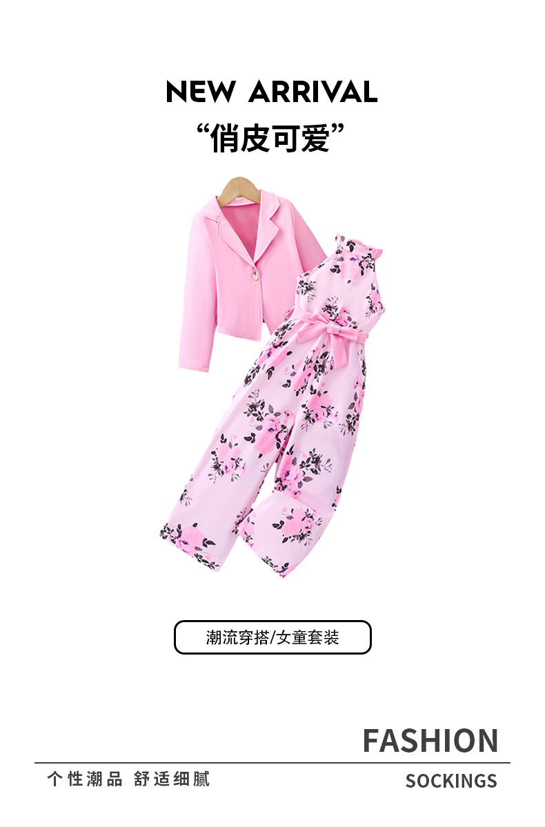 국경 간 유럽 스타일 소녀 정장 민소매 꽃 홀터넥 점프 슈트 핑크 정장 재킷 어린이 투피스 양복