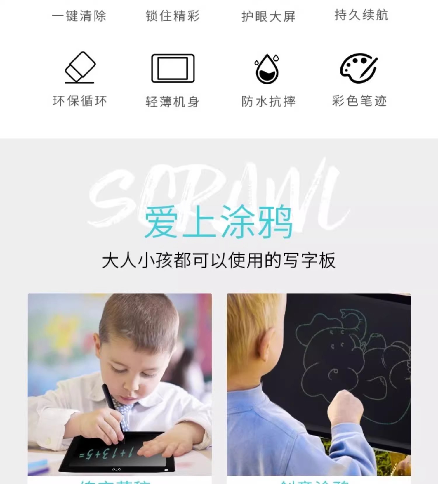 드로잉 보드 어린이 홈 LCD 글쓰기 보드 지울 수있는 칠판 전자 낙서 드로잉 보드 교육 완구