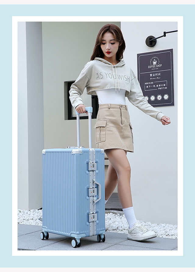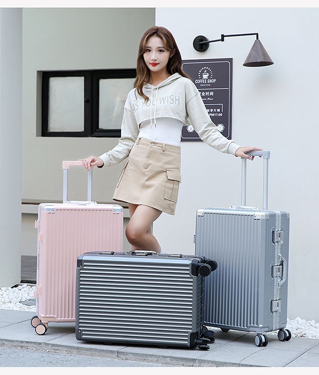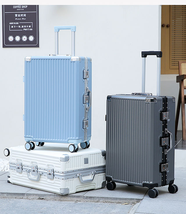 수하물 케이스 여성의 대용량 알루미늄 프레임 트롤리 케이스 사일런트 유니버설 휠 학생 비밀번호 상자 남성용 견고하고 튼튼한 가방스토어 가기
