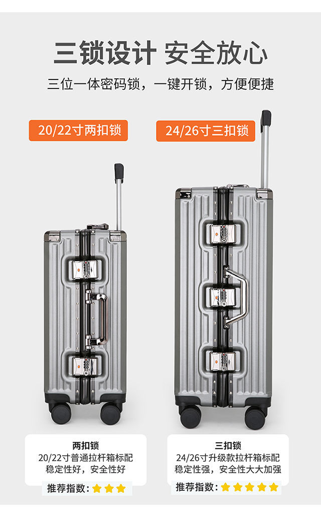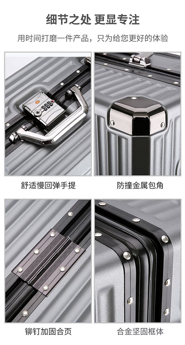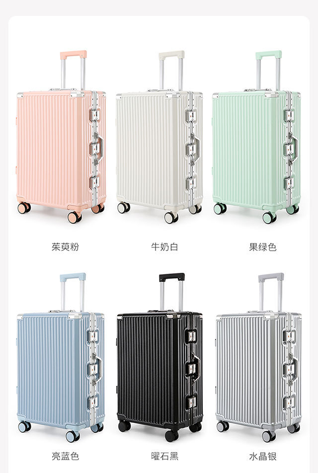 수하물 케이스 여성의 대용량 알루미늄 프레임 트롤리 케이스 사일런트 유니버설 휠 학생 비밀번호 상자 남성용 견고하고 튼튼한 가방