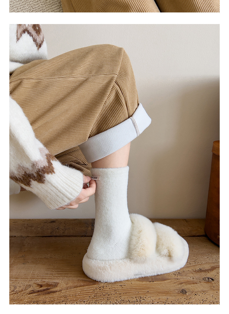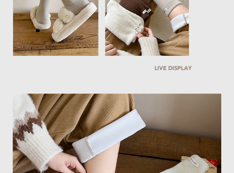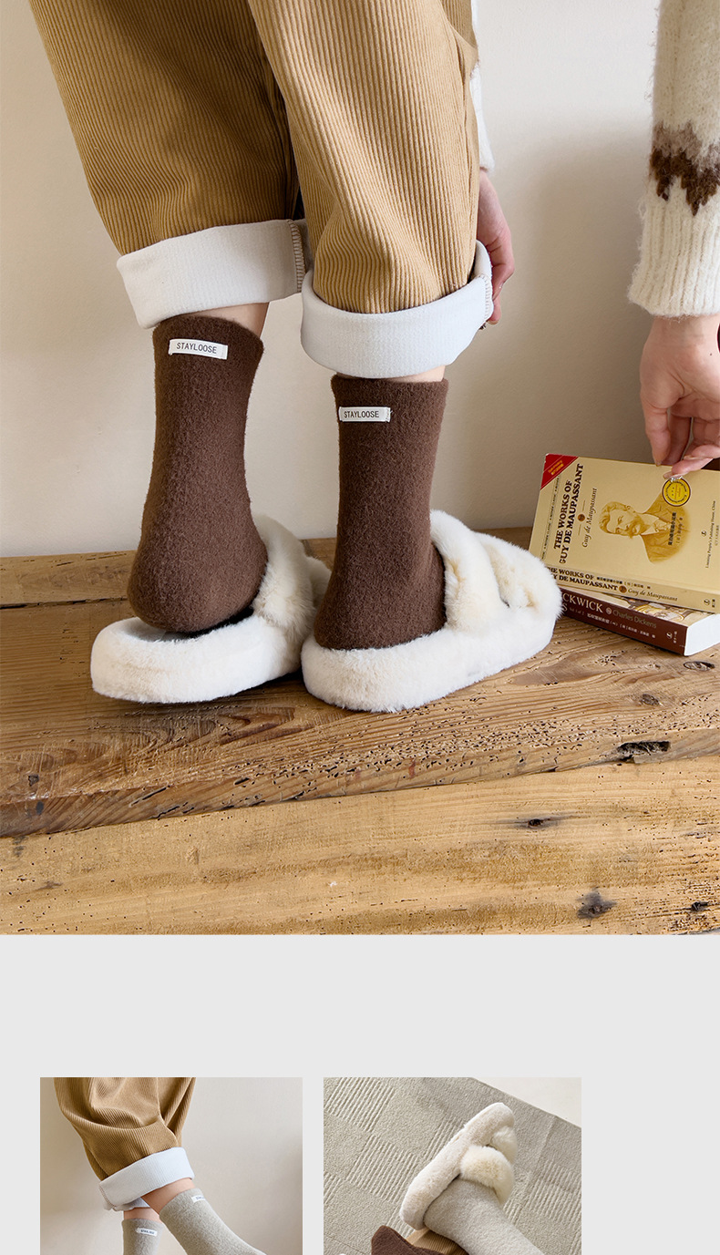 65g ± 5g 천 라벨 양말 여성의 가을과 겨울 따뜻한 호주 벨벳 패딩 Maillard 컬러 수면 미드 튜브 문 양말