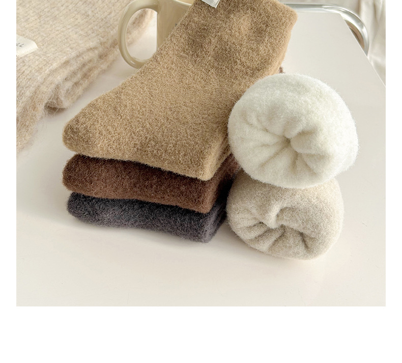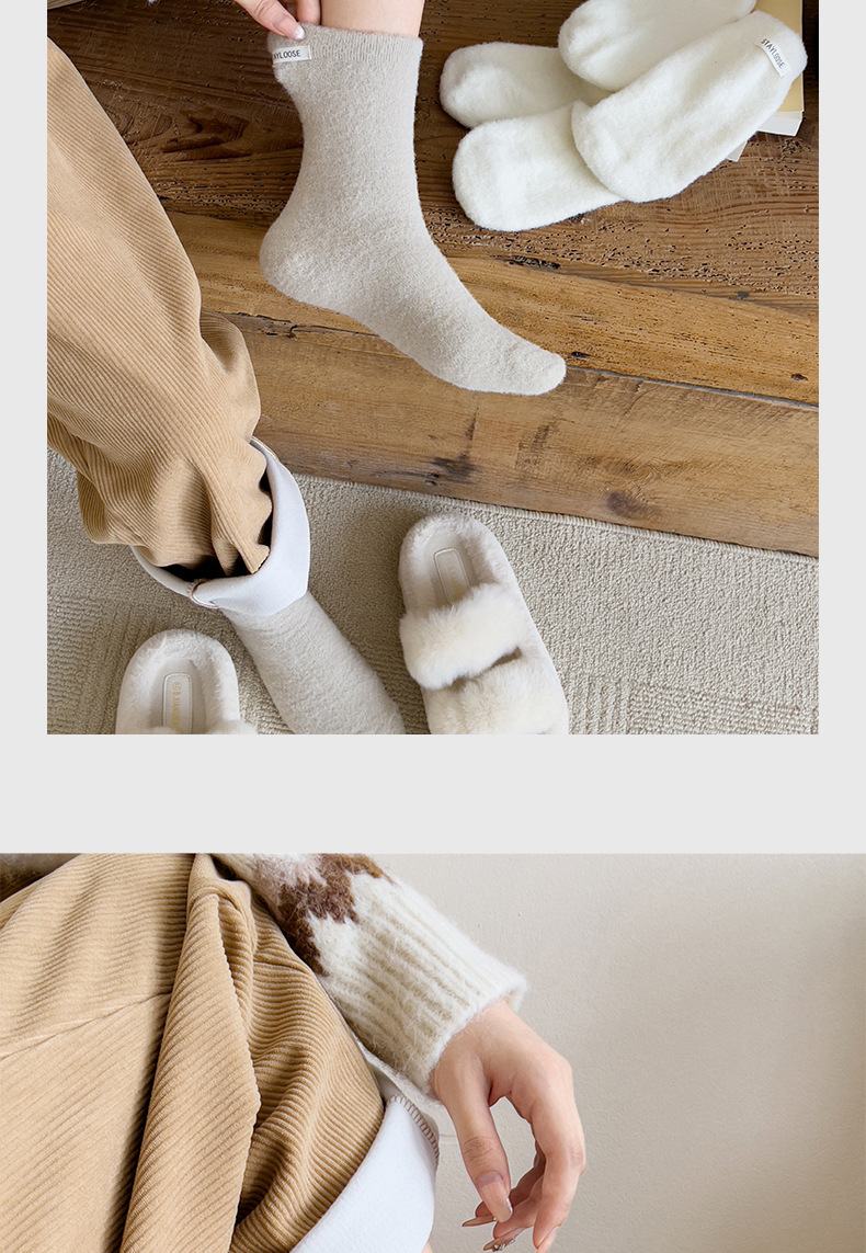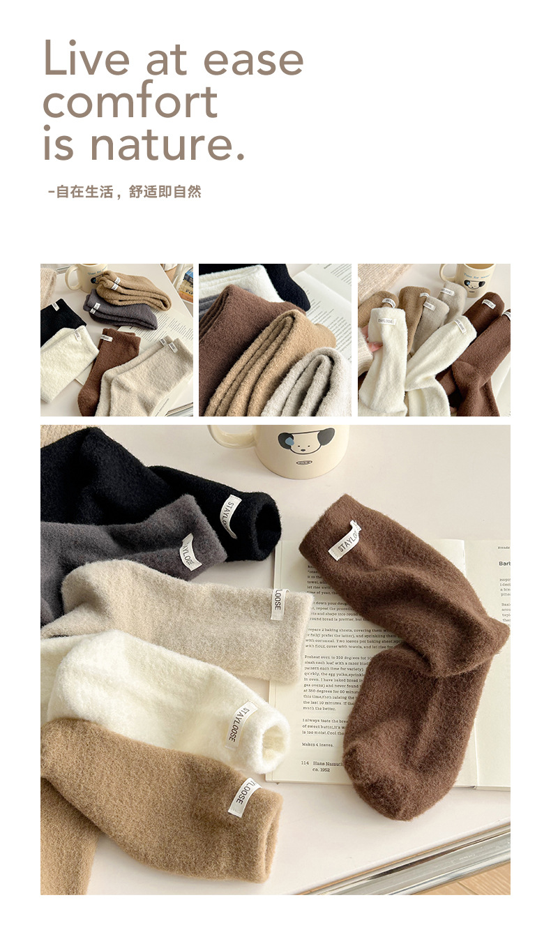 65g ± 5g 천 라벨 양말 여성의 가을과 겨울 따뜻한 호주 벨벳 패딩 Maillard 컬러 수면 미드 튜브 문 양말스토어 가기