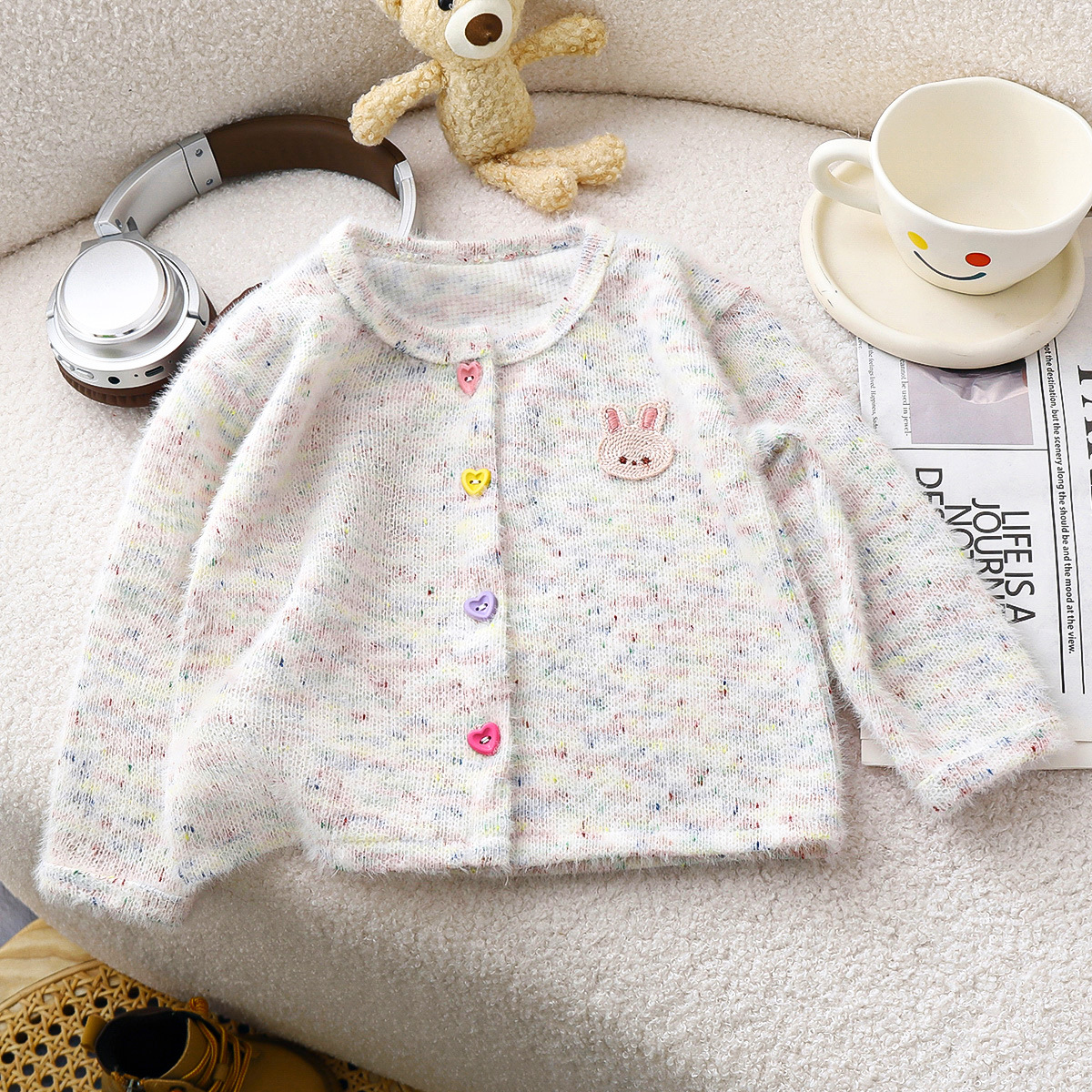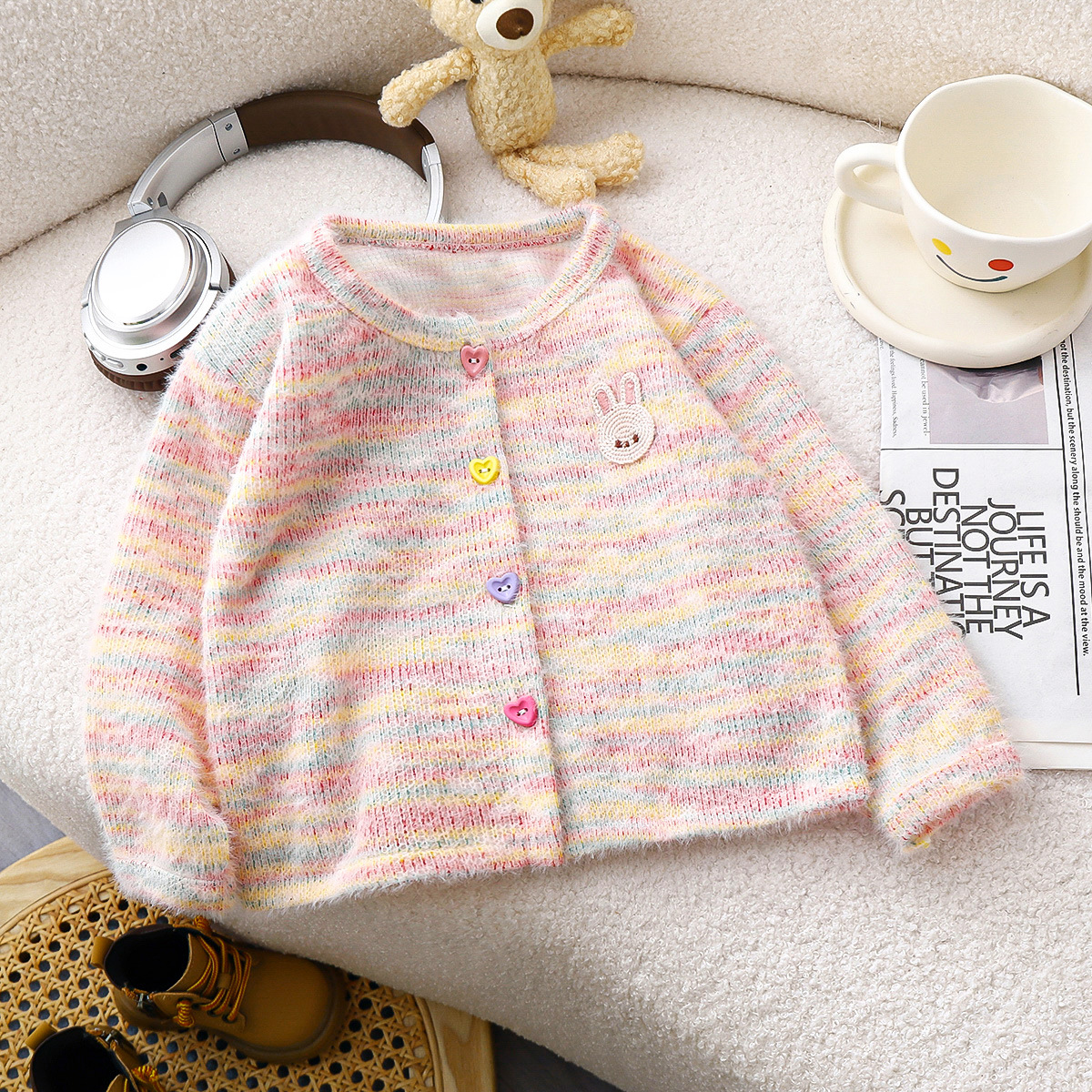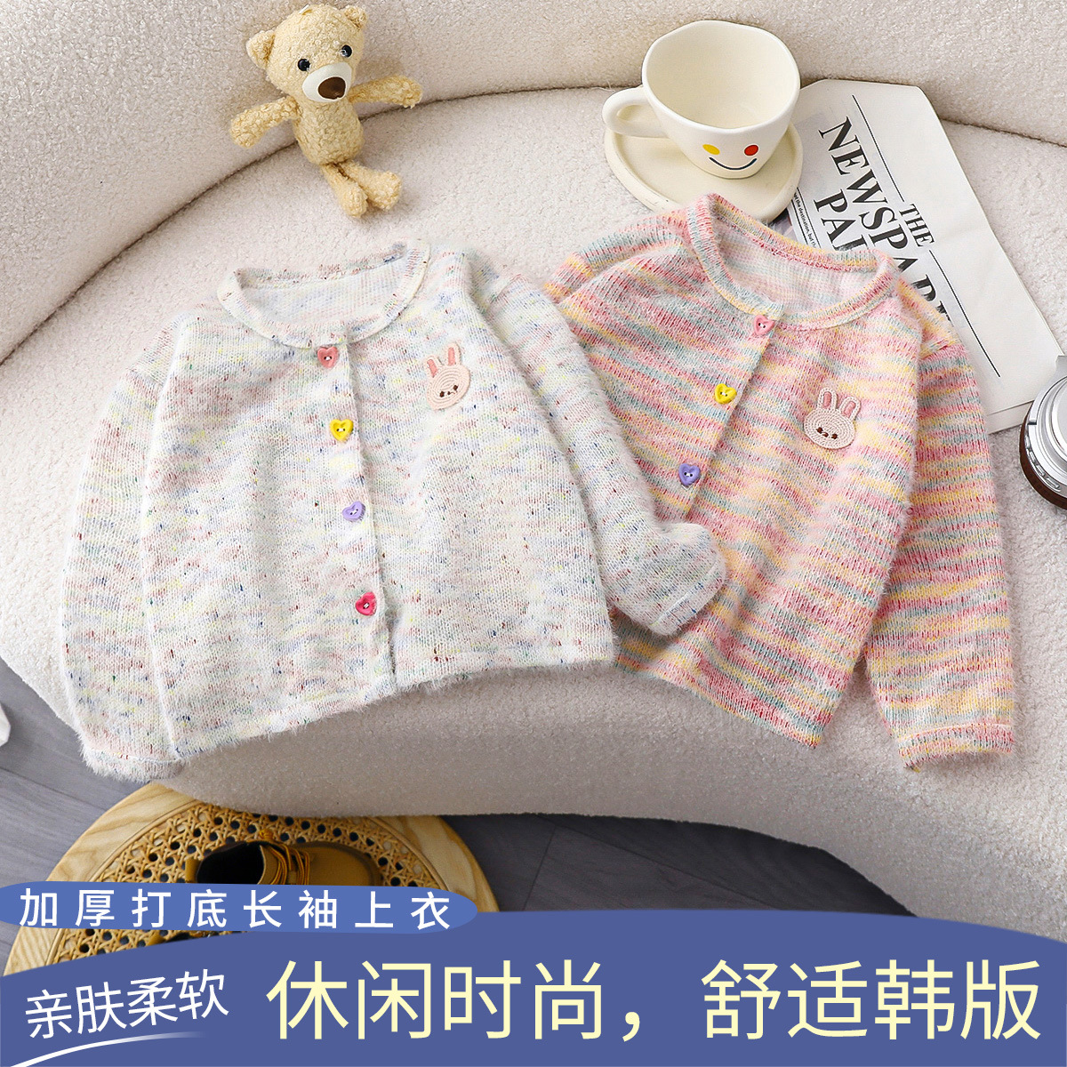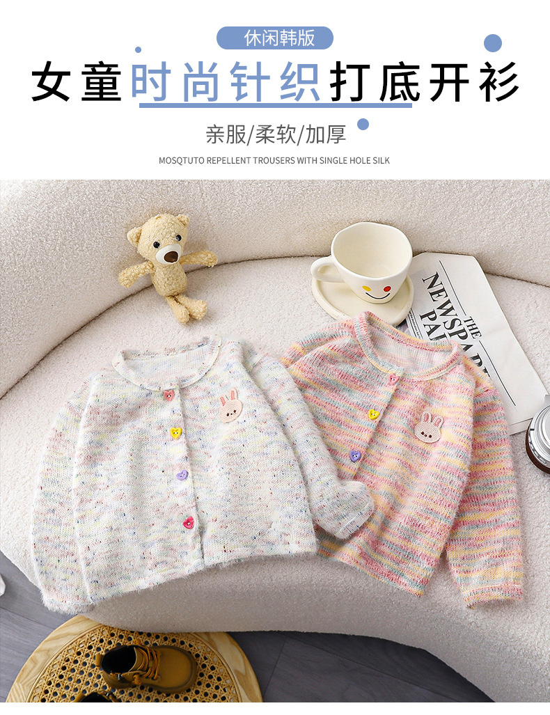 2024 년 가을 새 소녀들의 세련된 니트 카디건 어린이 한국식 올매치 패션 다채로운 마오 마오 탑스토어 가기