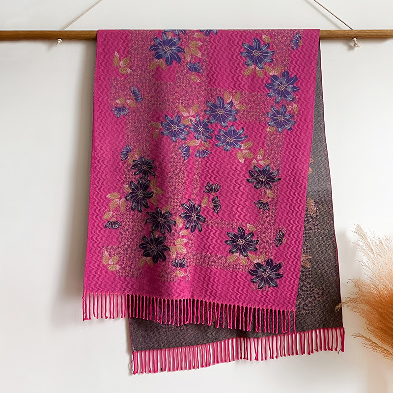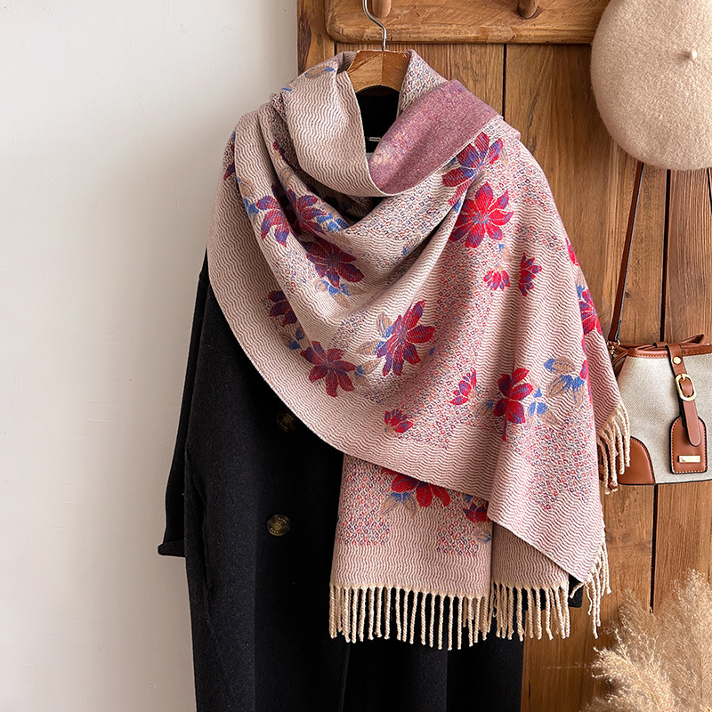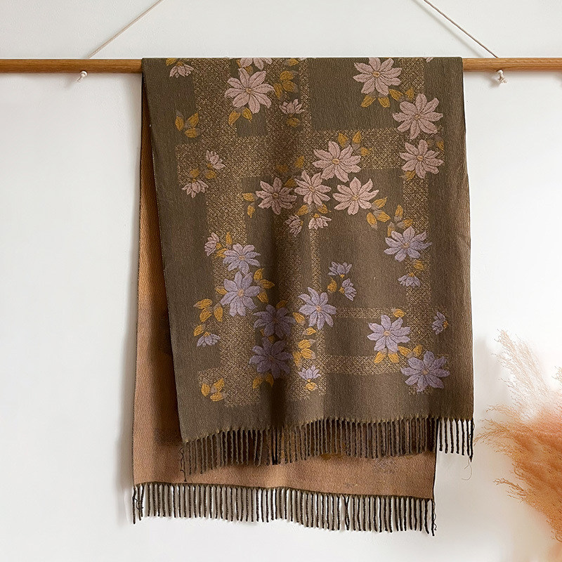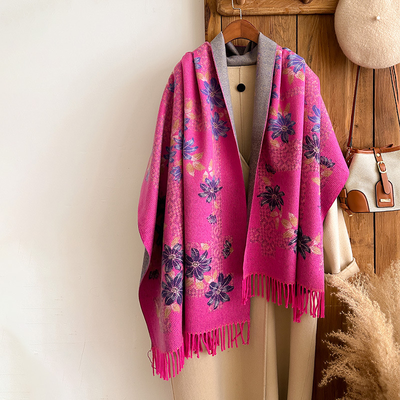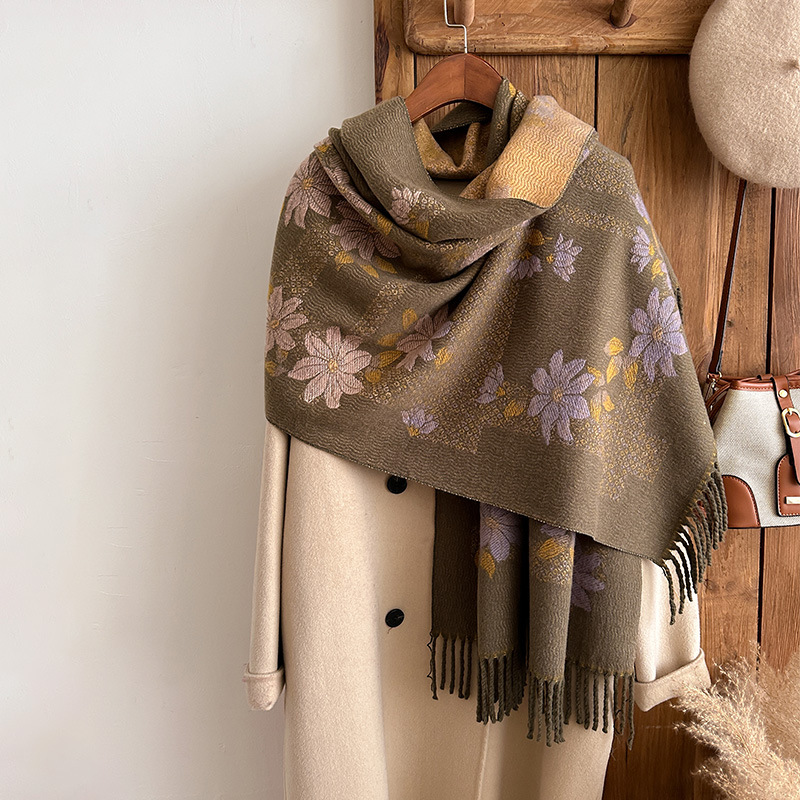 2024 새로운 식물 꽃 해바라기 패턴 우아한 패션 따뜻한 캐시미어 스카프 목도리 케이프 여성