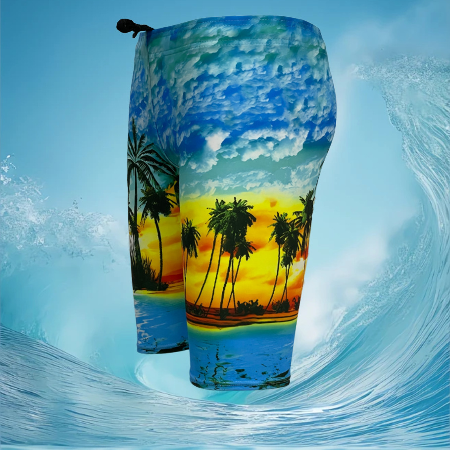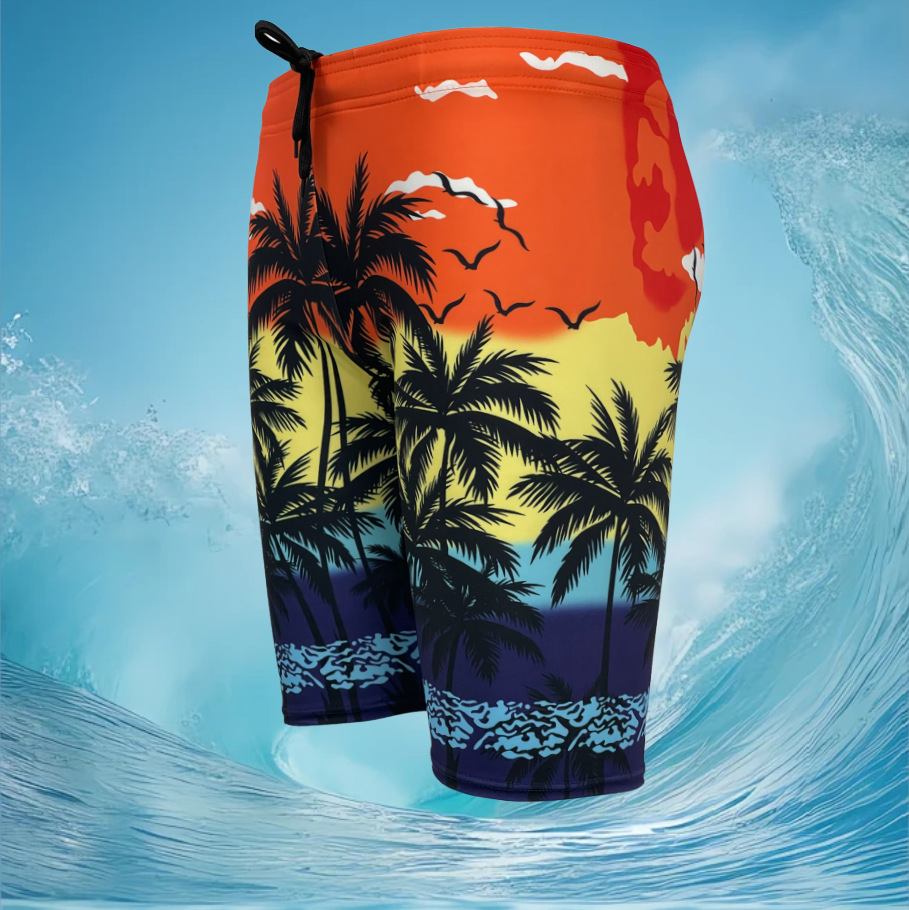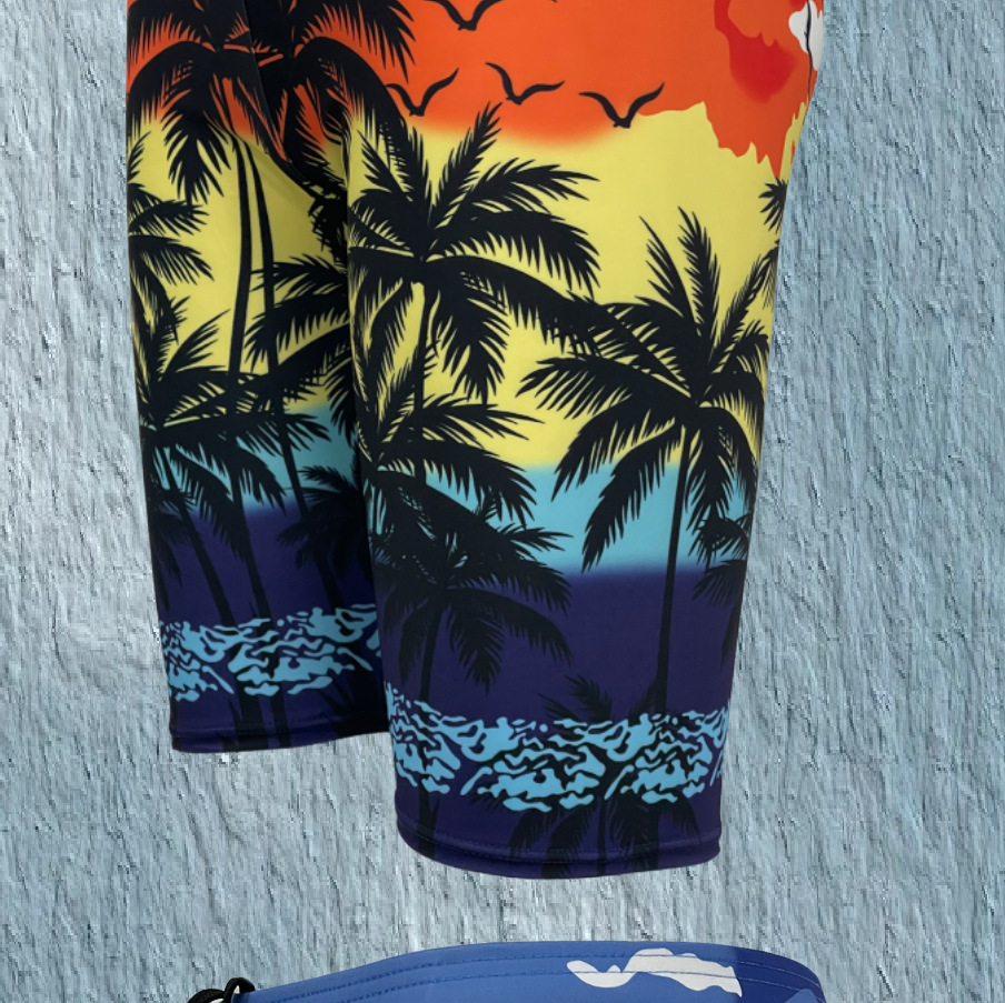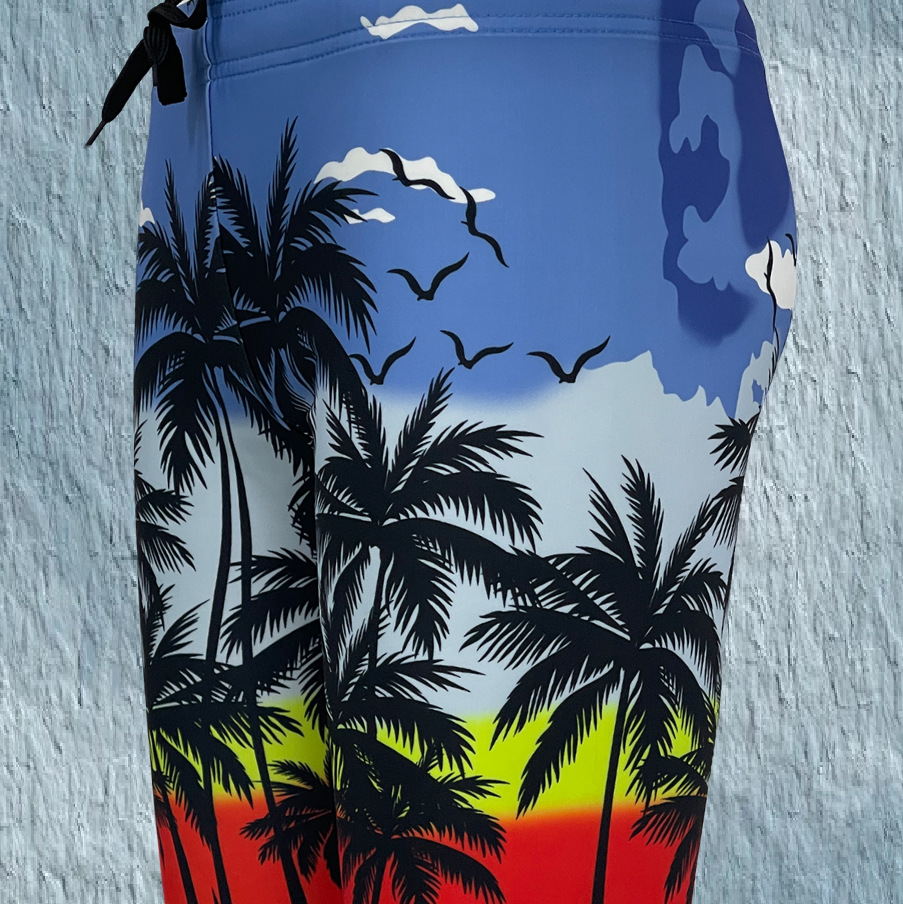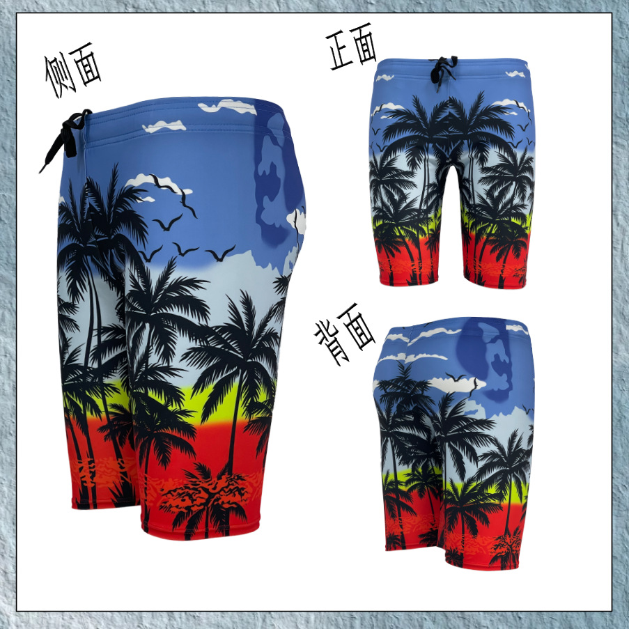 랑치2025 크로스보더 여름 신상 남성 비치 팬츠 루즈핏 캐주얼 코코넛 나무 하와이 휴가 스타일 속건