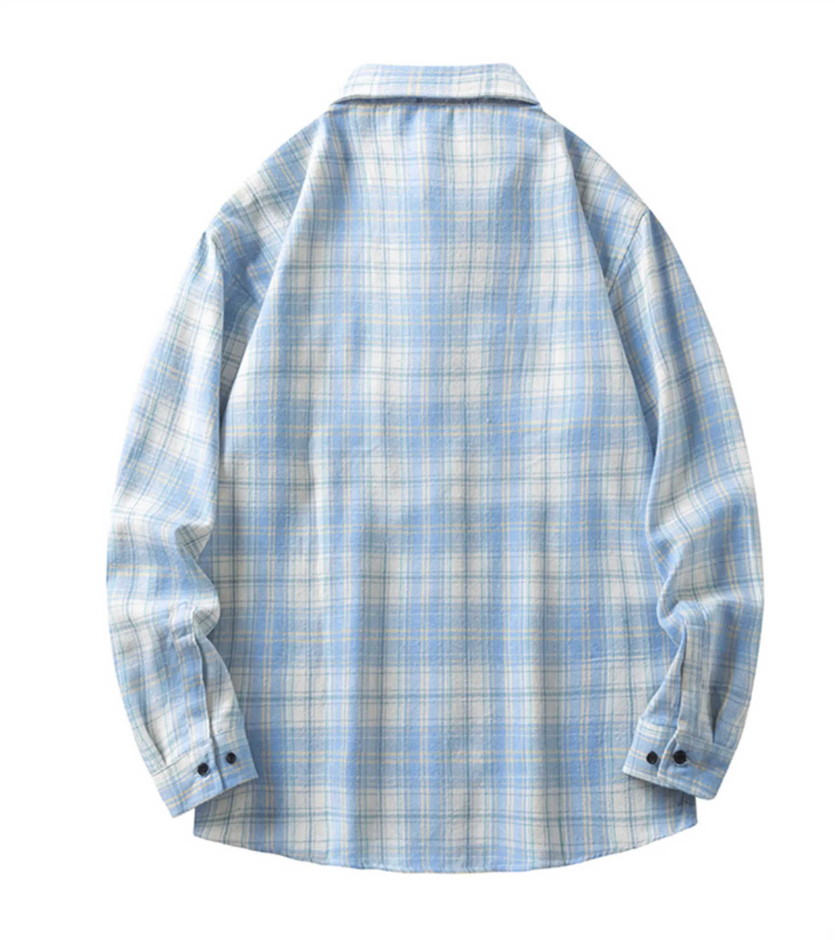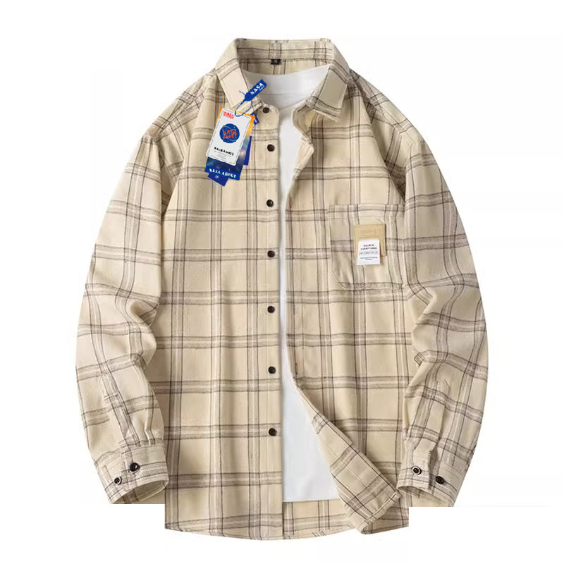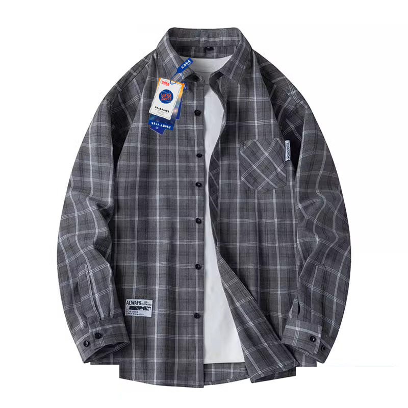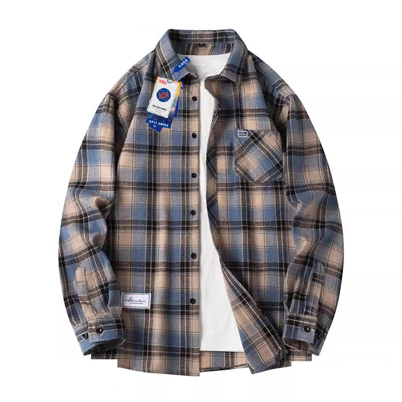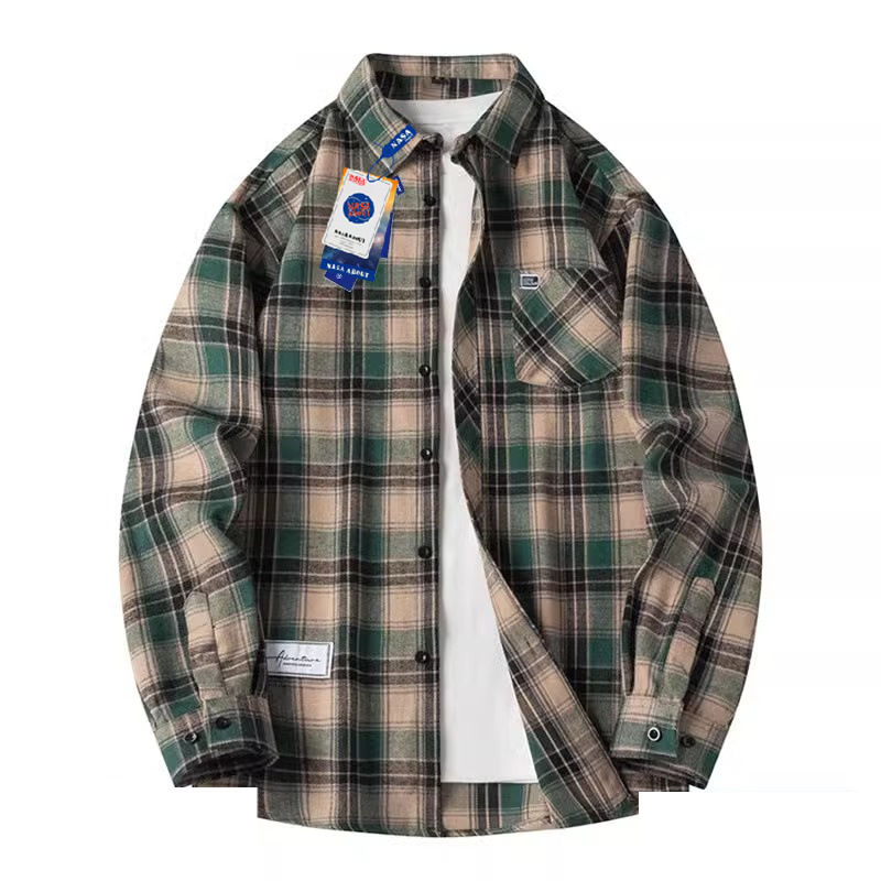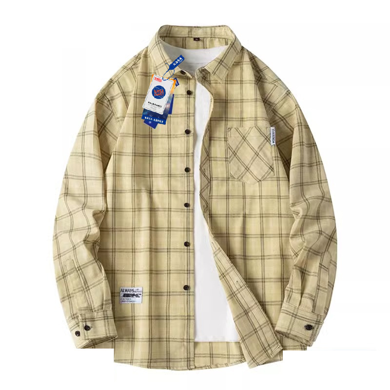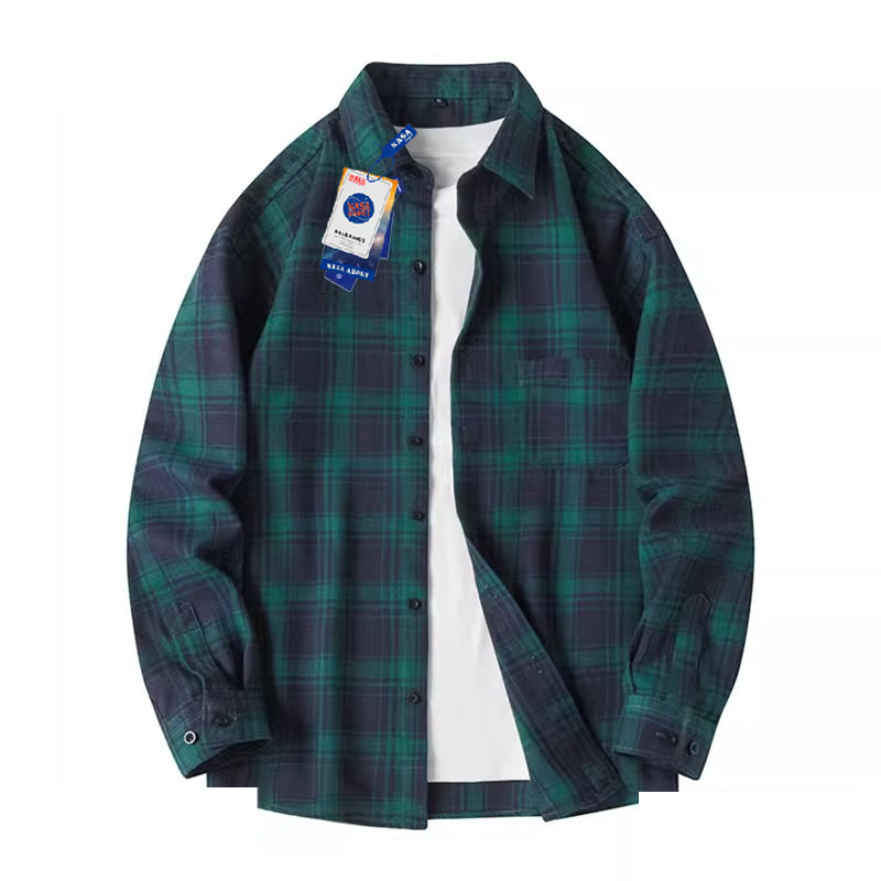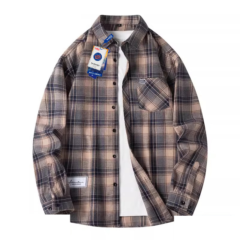 NASA 셔츠 남성용 루즈핏 긴팔 봄 가을 캐주얼 셔츠 다용도 커플 레트로 체크무늬 재킷 패션 캐주얼스토어 가기