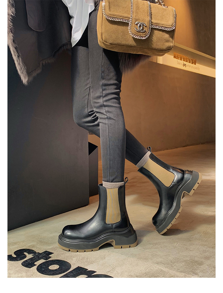 2025 포도 엄마 정품 가죽 슬립 온 마틴 부츠 가을 겨울 새로운 유행 둥근 발가락 두꺼운 발 뒤꿈치 두꺼운 단독 증가 첼시스토어 가기