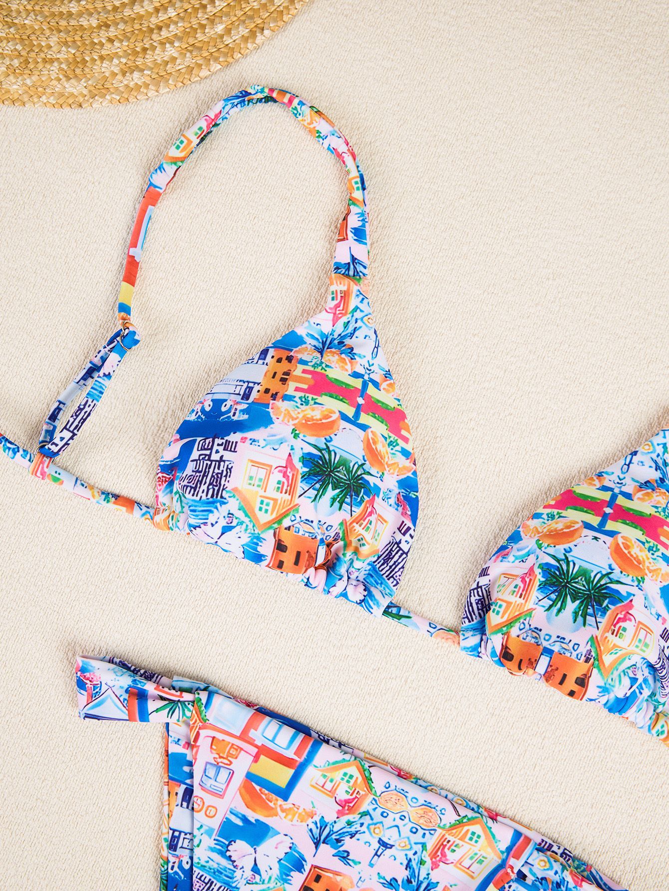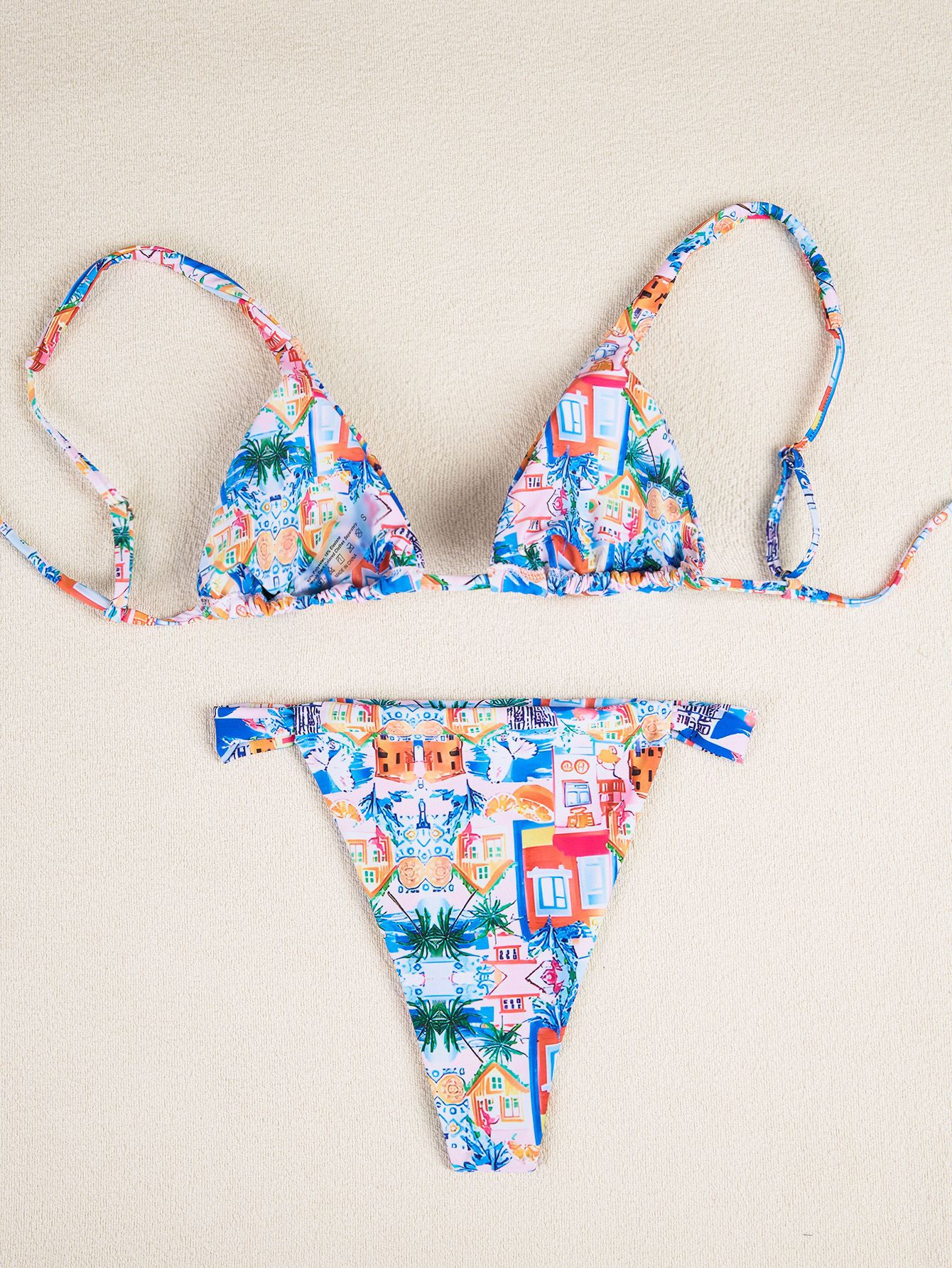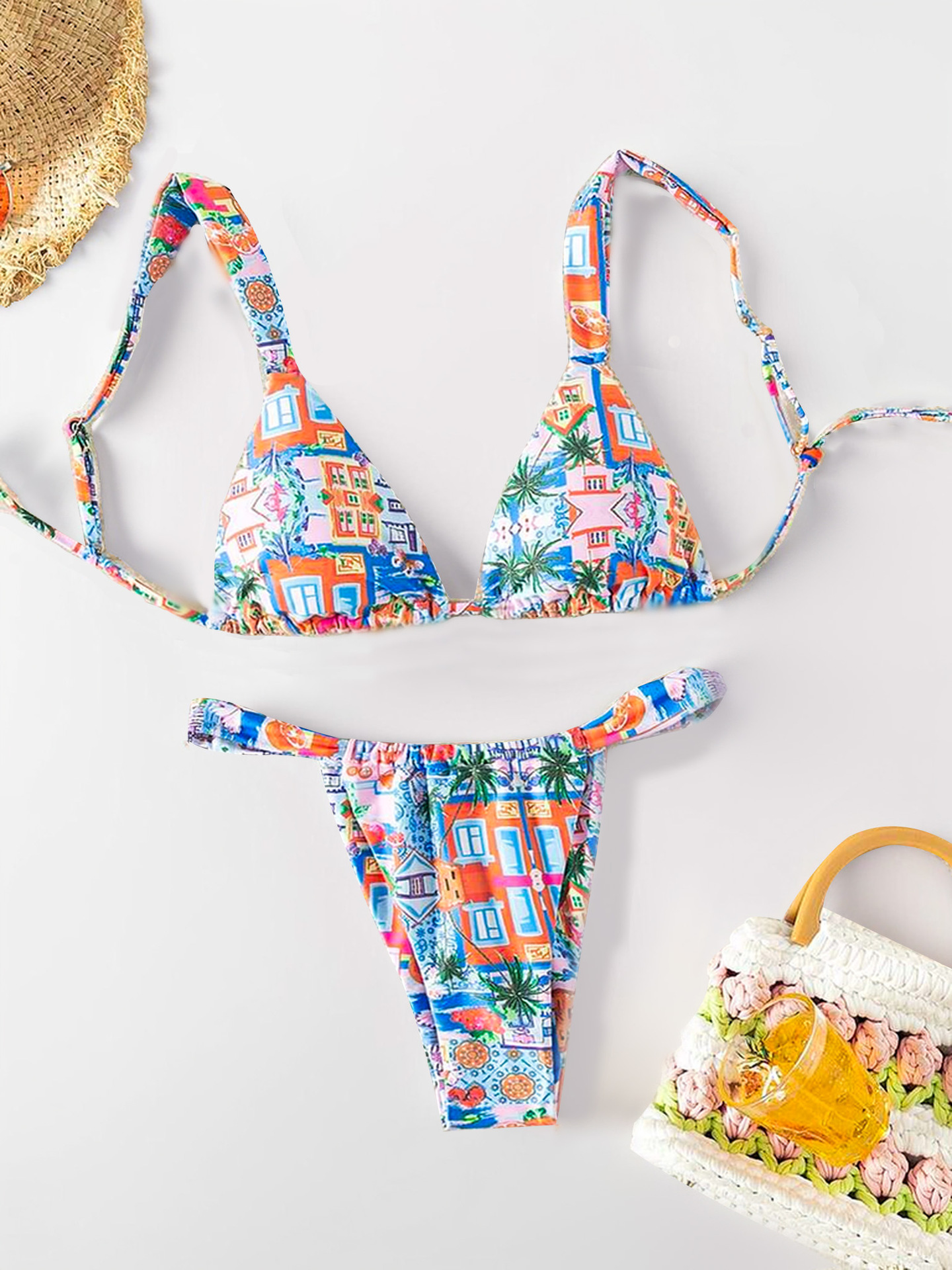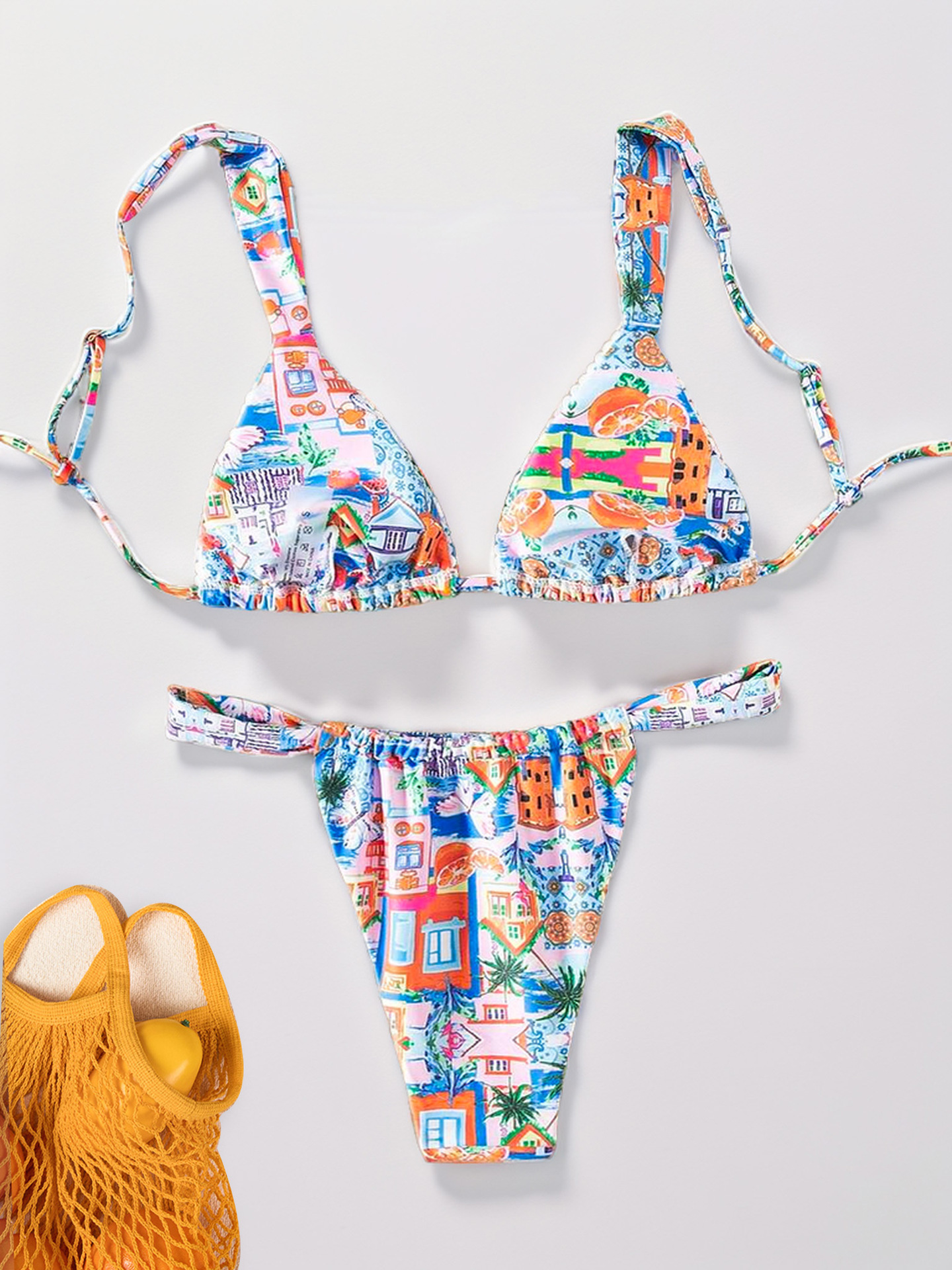 국경 2025 새로운 유럽과 미국의 패션 인쇄 수영복 섹시한 분할 수영복 비키니 비키니 여성스토어 가기