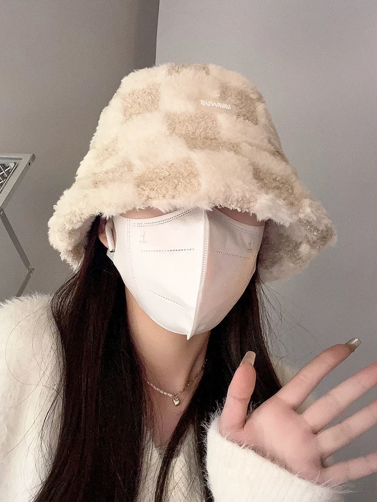 바둑판 어부 모자 어린이 일본 양고기 양털 분지 모자 두꺼운 따뜻한 큰 머리 얼굴 작은 봉제 양동이 모자스토어 가기