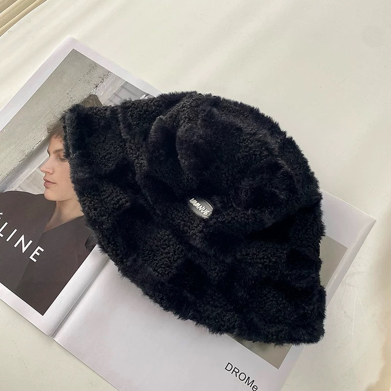 바둑판 어부 모자 어린이 일본 양고기 양털 분지 모자 두꺼운 따뜻한 큰 머리 얼굴 작은 봉제 양동이 모자