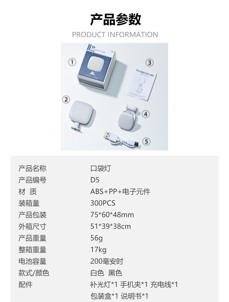D5 휴대폰 보조 조명 클립 토프루 미니 라이트 뷰티 라이트 미니 라이브 방송 셀카 조명 사진 촬영 포켓 라이트 컴팩트