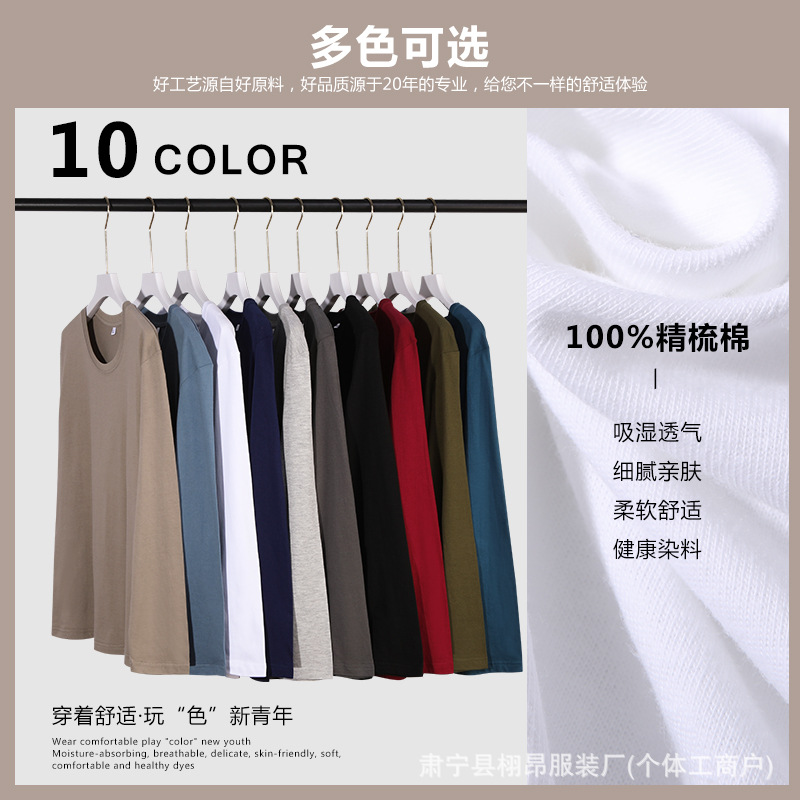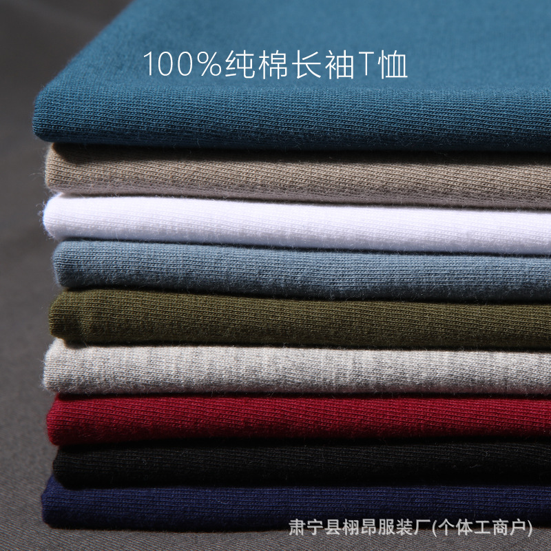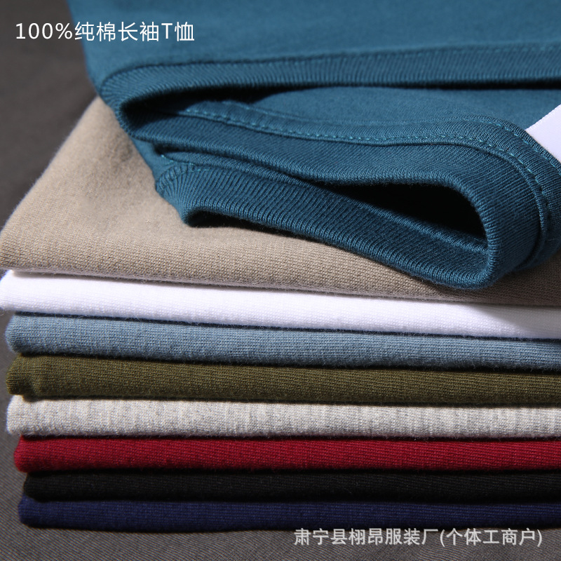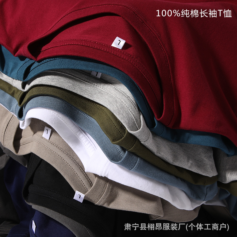 봄과 가을 180g 면 긴 소매 티셔츠 남성용 느슨한 크루 넥 단색 티셔츠 남성복 가을 옷 도매스토어 가기