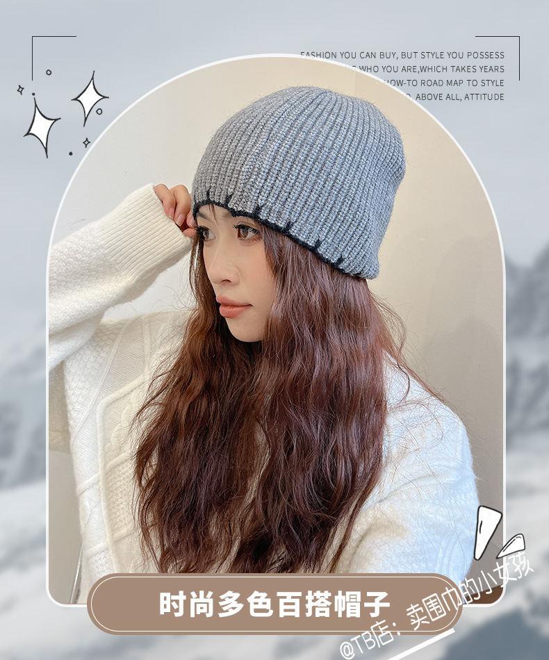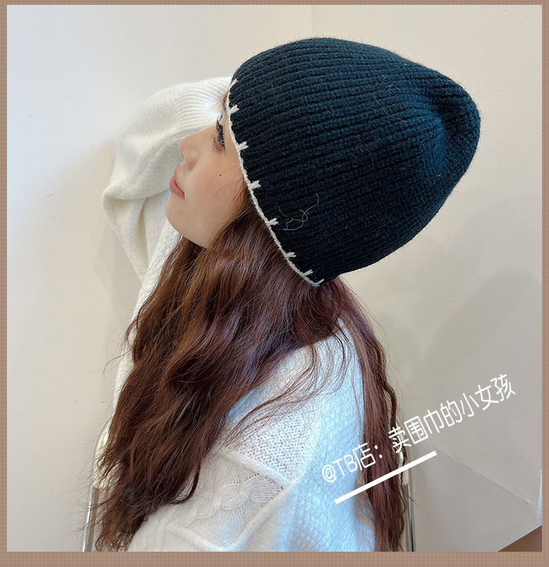 한국식 Ins 솔리드 컬러 남녀 올매치 니트 양모 모자 가을과 겨울 빈티지 패션 정리 얼굴 모양의 작은 헤드 기어스토어 가기