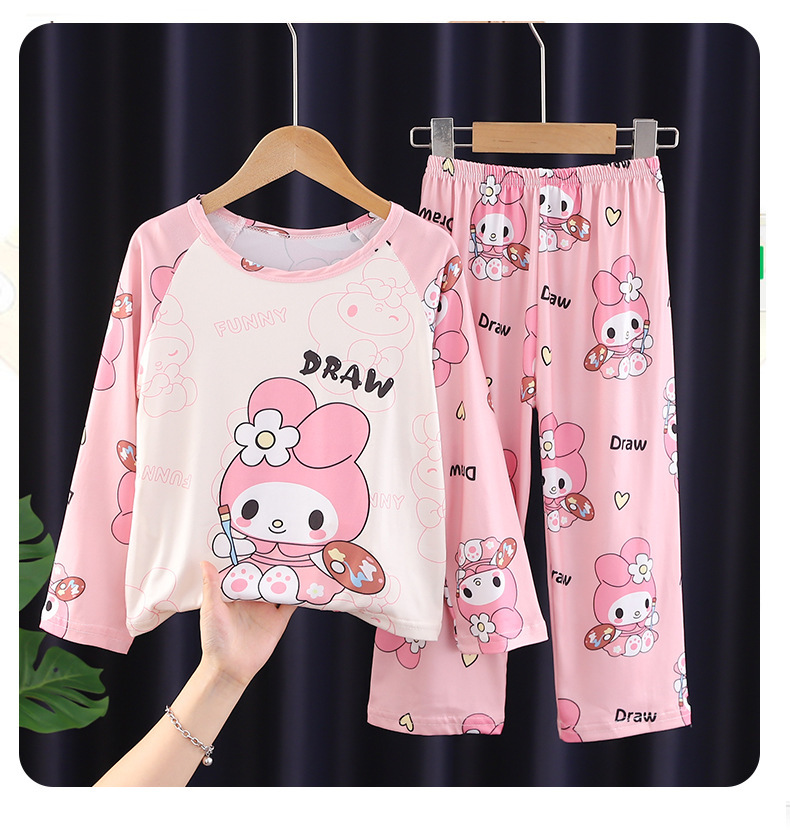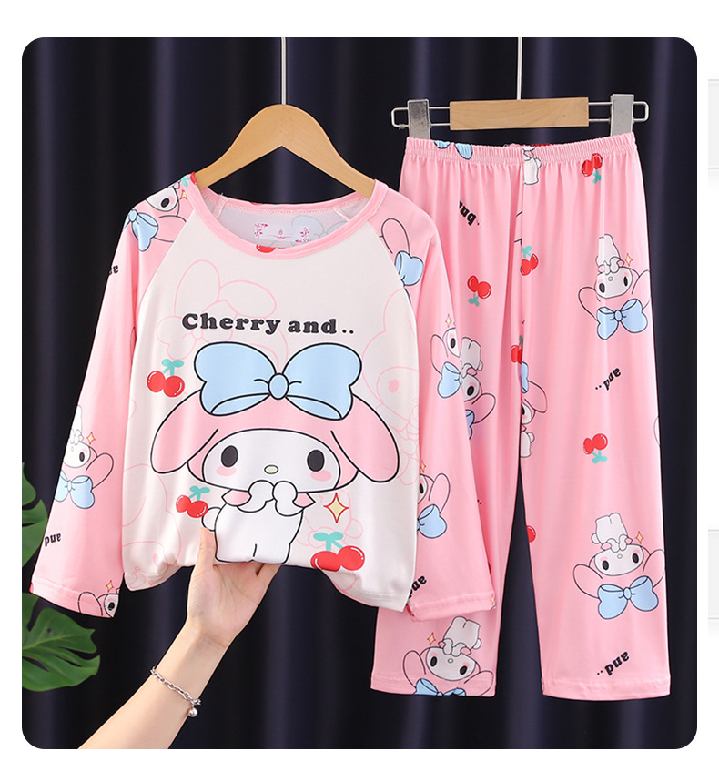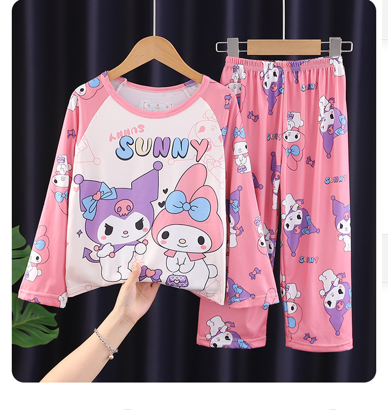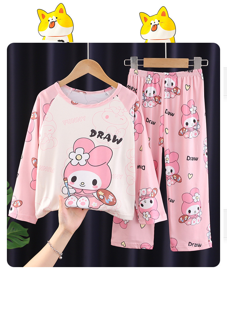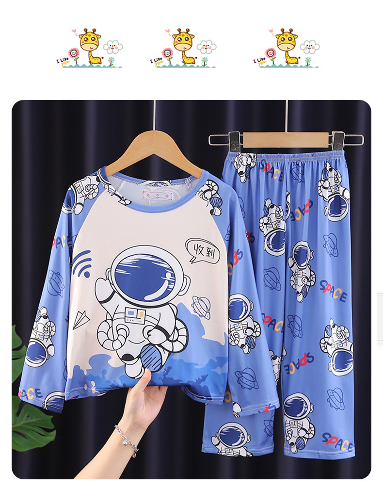 24 가을 한국 어린이 가정 의류 세트 소년 소녀 만화 전체 인쇄 만화 잠옷 긴 소매 아기 속옷 세트