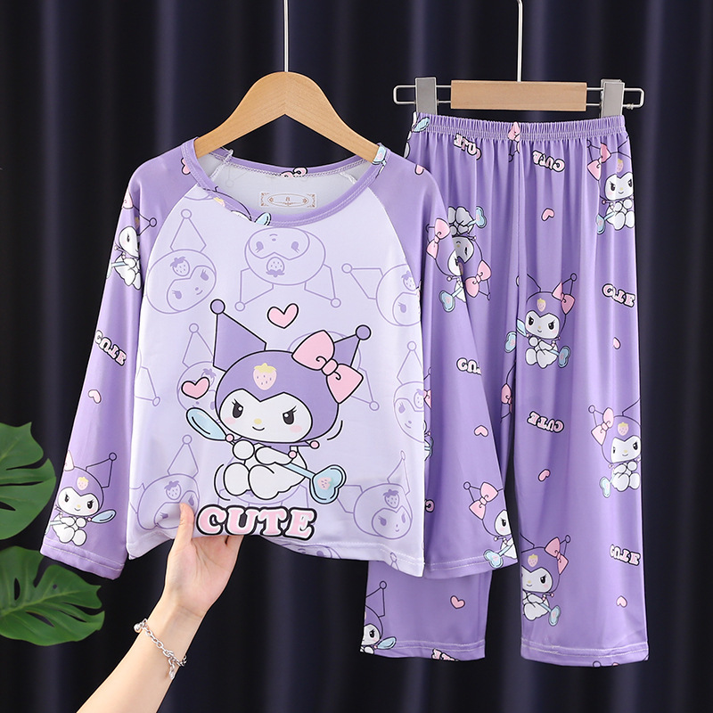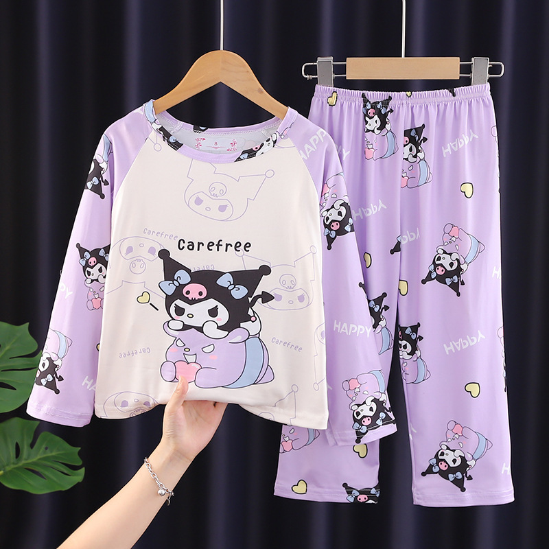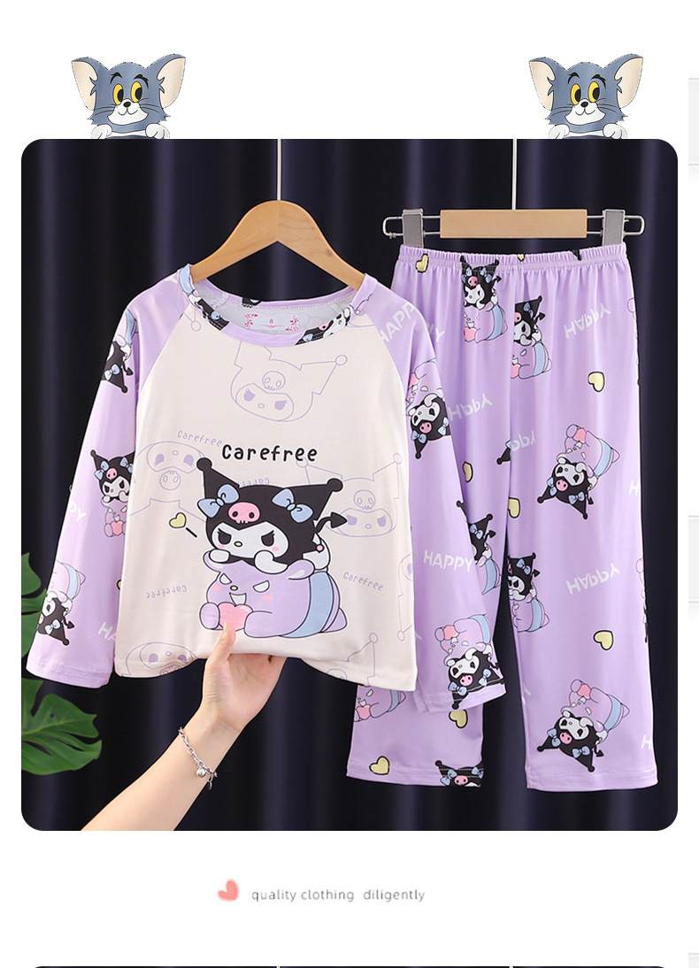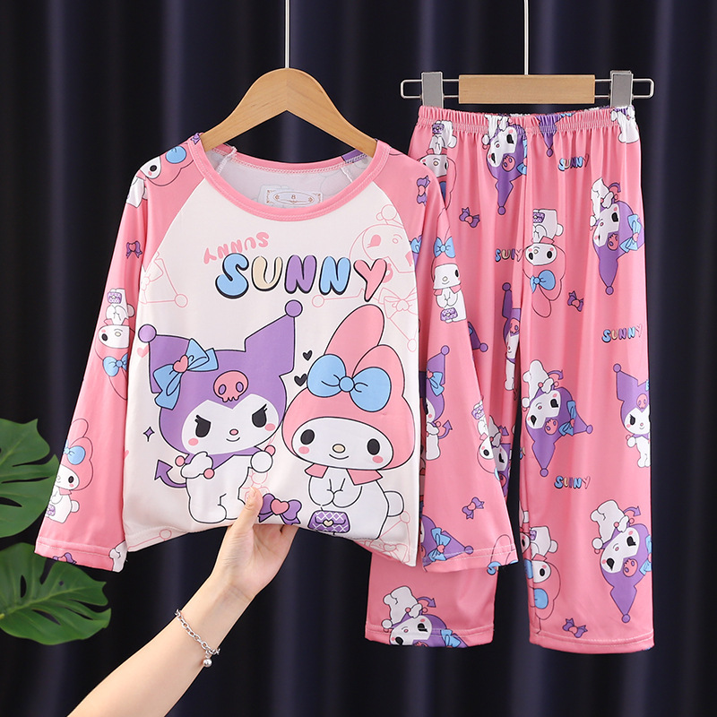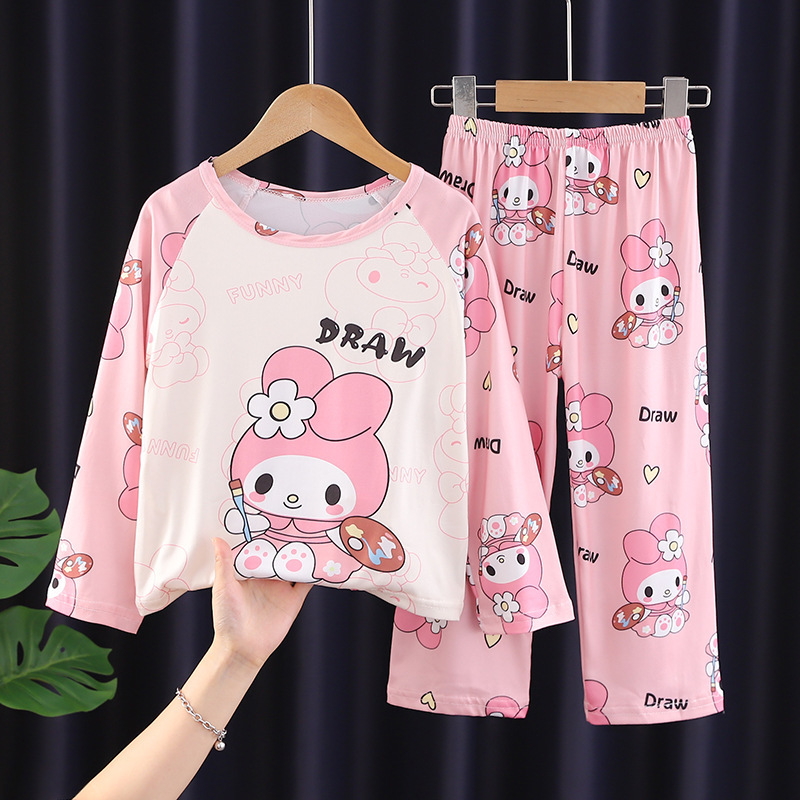 24 가을 한국 어린이 가정 의류 세트 소년 소녀 만화 전체 인쇄 만화 잠옷 긴 소매 아기 속옷 세트