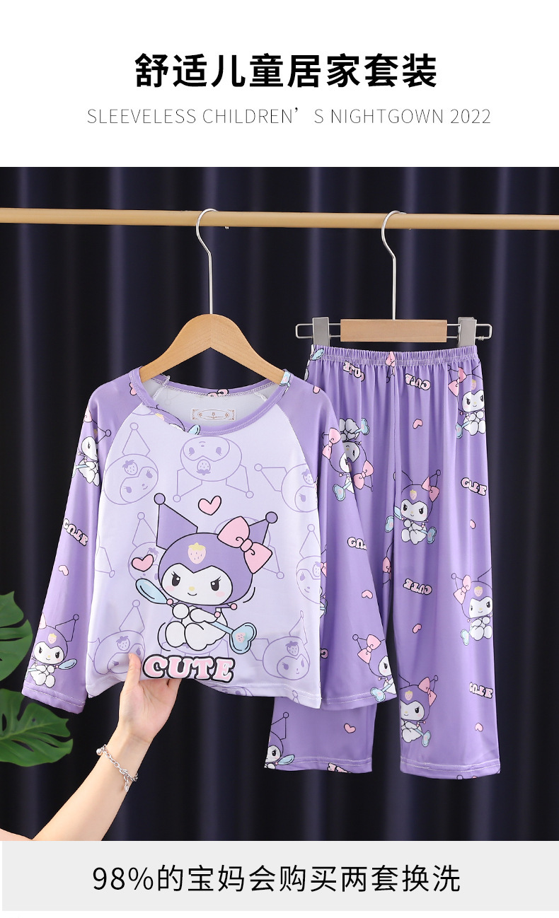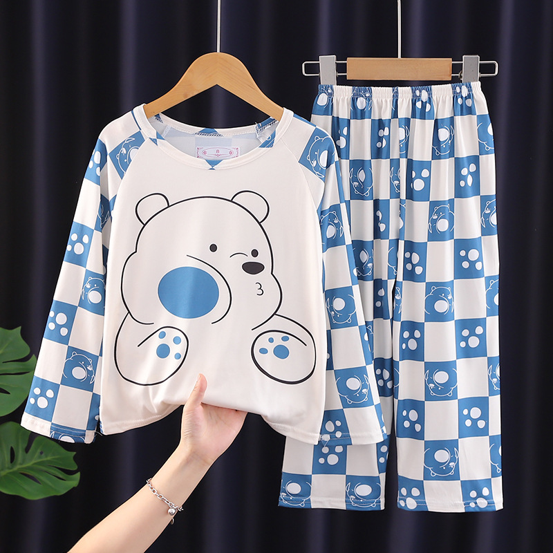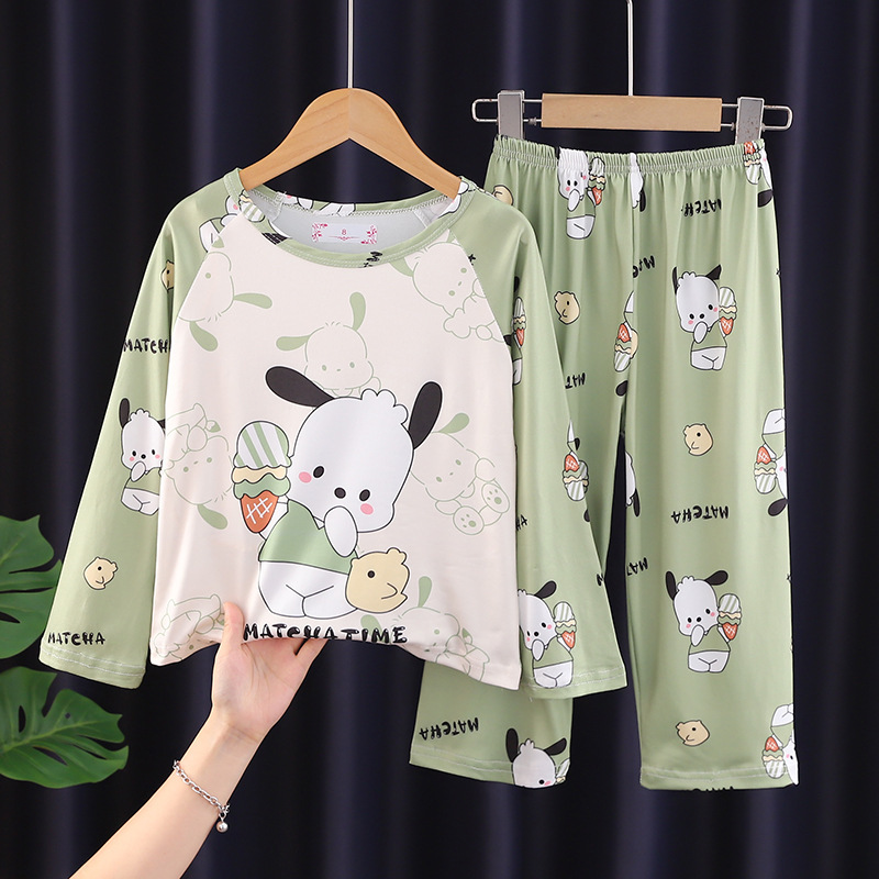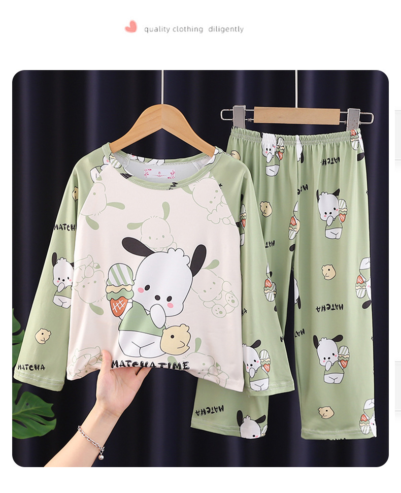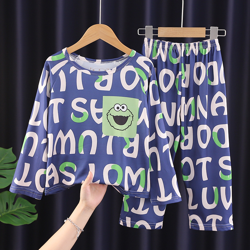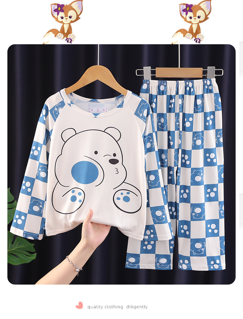 24 가을 한국 어린이 가정 의류 세트 소년 소녀 만화 전체 인쇄 만화 잠옷 긴 소매 아기 속옷 세트스토어 가기