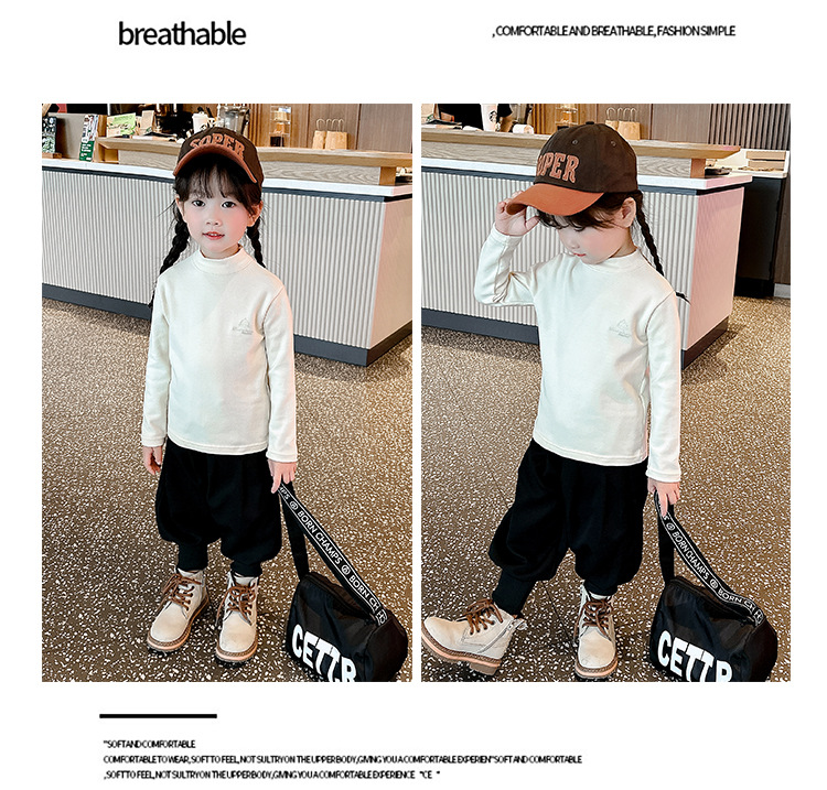 어린이 가을과 겨울 셔츠 양털 세미 하이 칼라 베이스 셔츠 코튼 긴팔 탑 어린이 따뜻한 가을 옷 소년 소녀를위한 옷