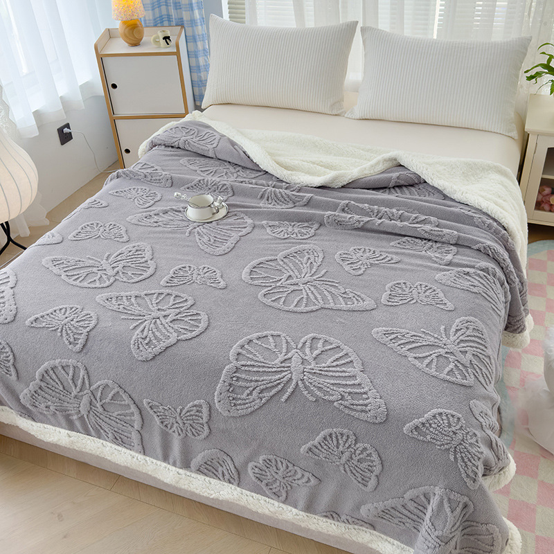 2024 포춘 나무 나비 자카드 양고기 양털 국경 간 유통 선호 담요 재고 일반 색상 배치스토어 가기