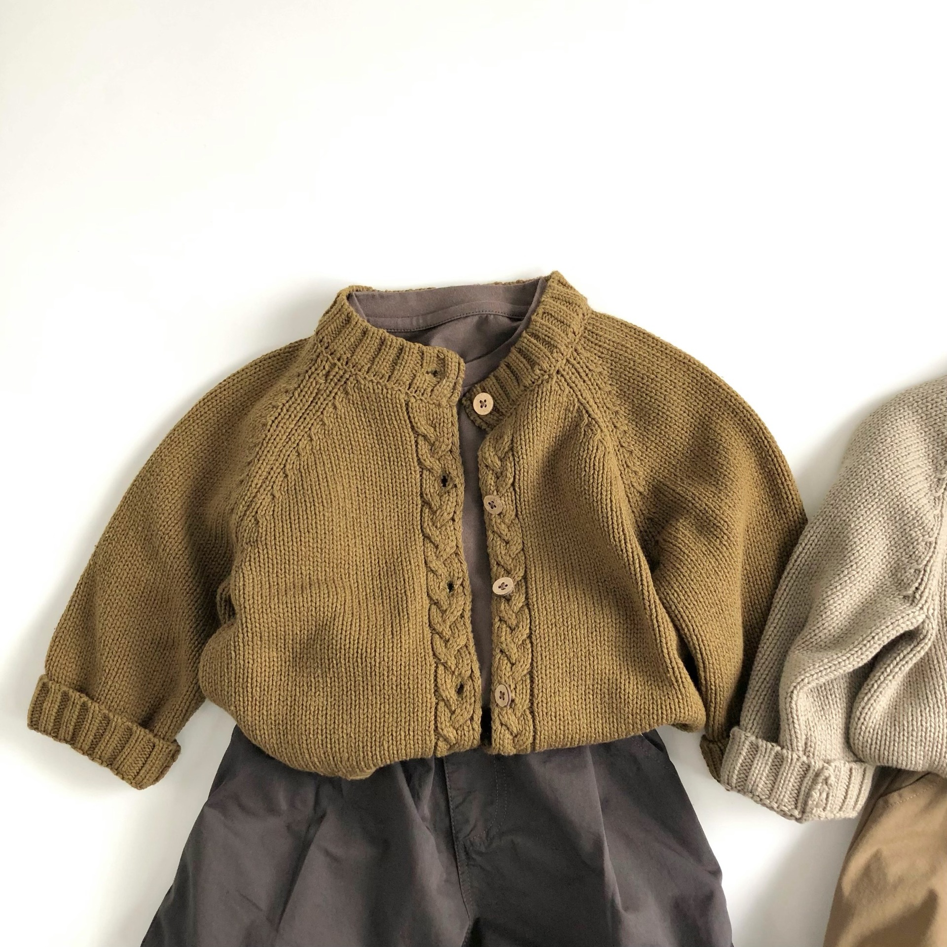출입 통제 트위스트 디자인 ~ 한국 소년 소녀 어린이 스웨터 니트 카디건 재킷 어린이 복고풍 패션스토어 가기