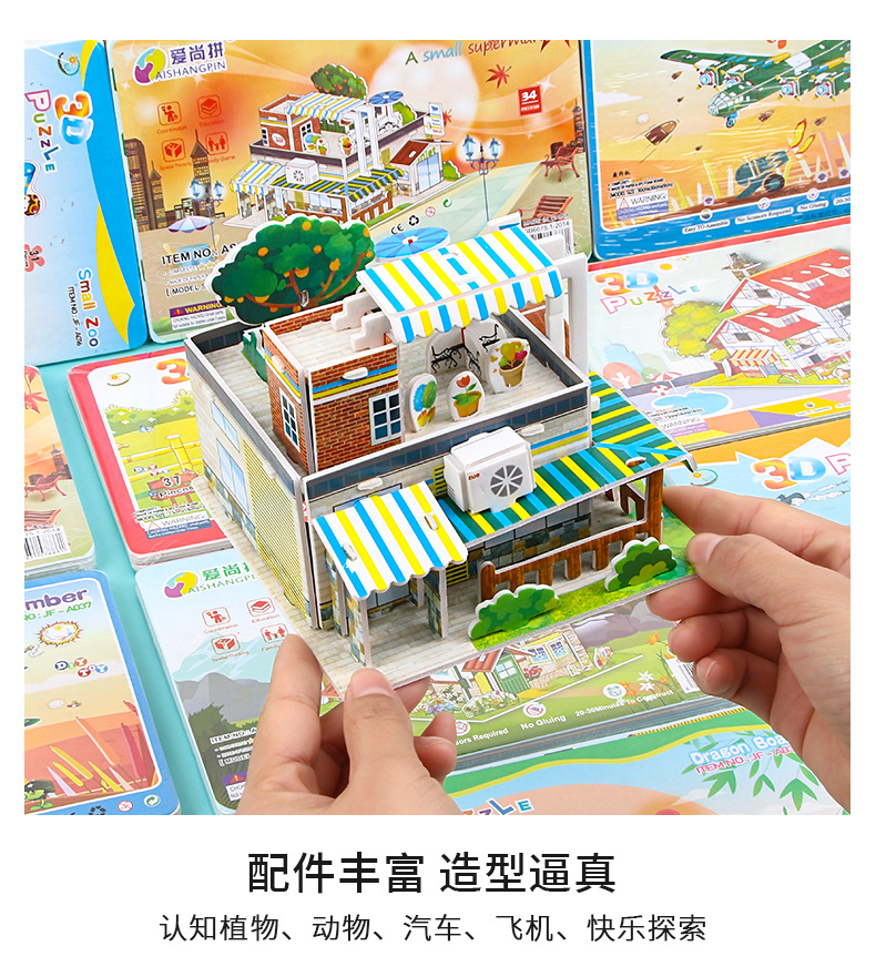 3D 3 차원 퍼즐 어린이 6-10 세 대형 자동차 교육 장난감 창조적 인 종이 유치원 수제 퍼즐스토어 가기