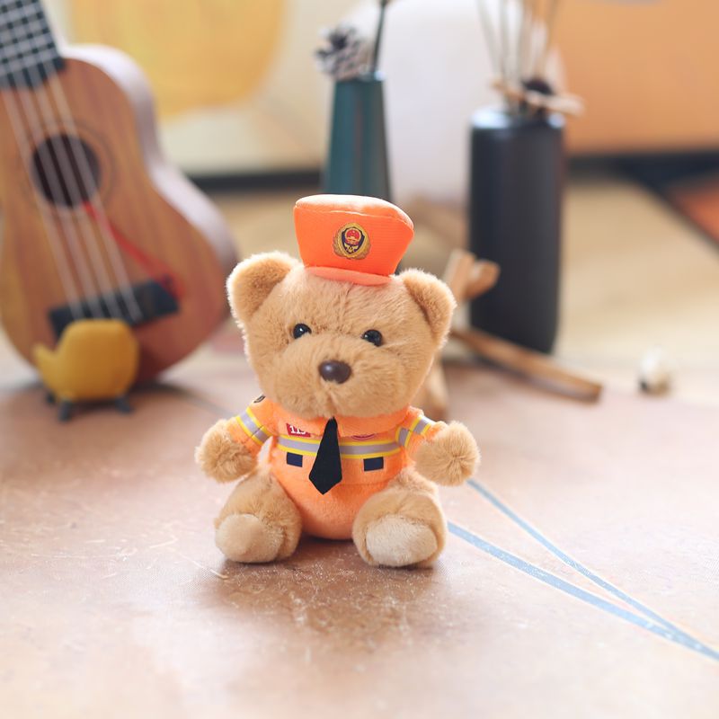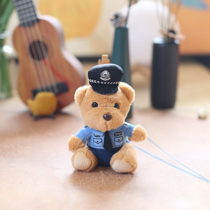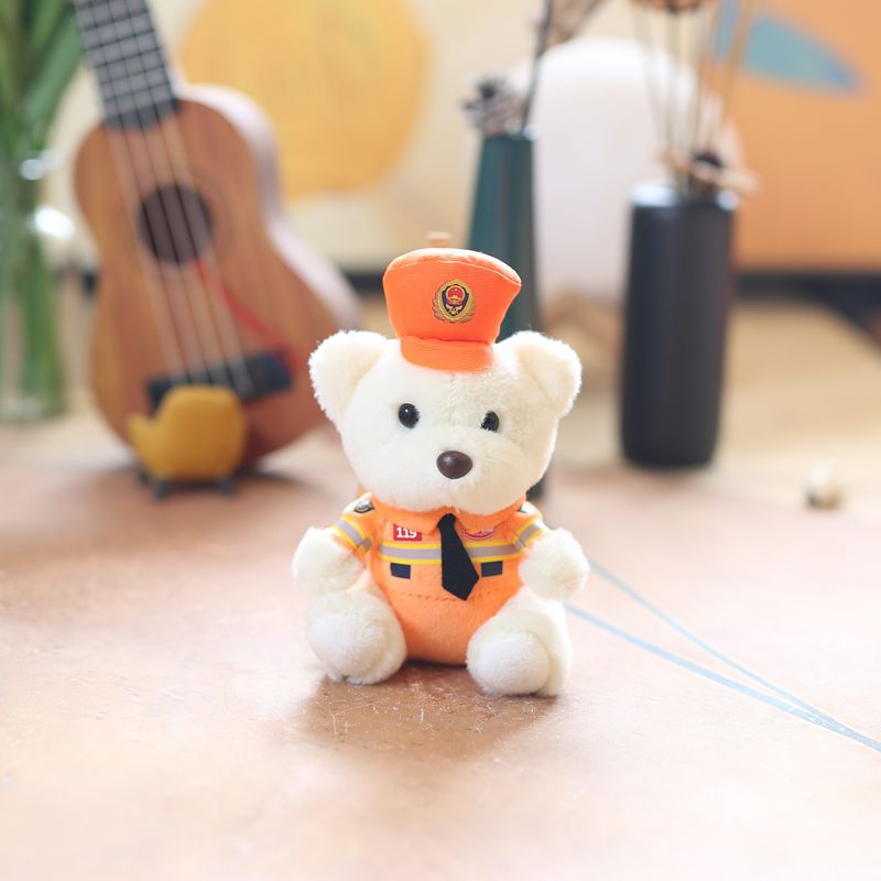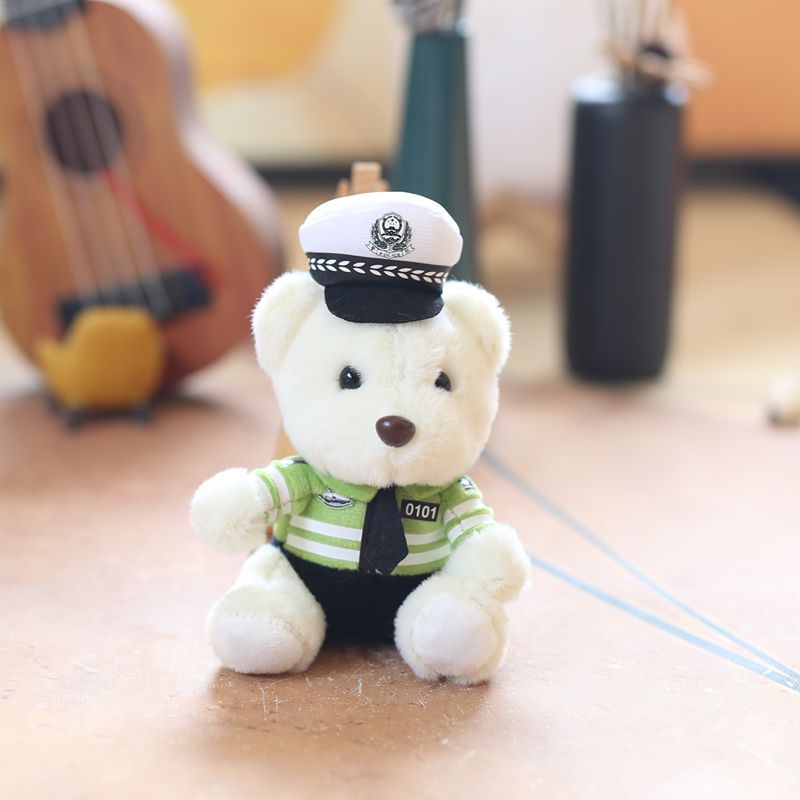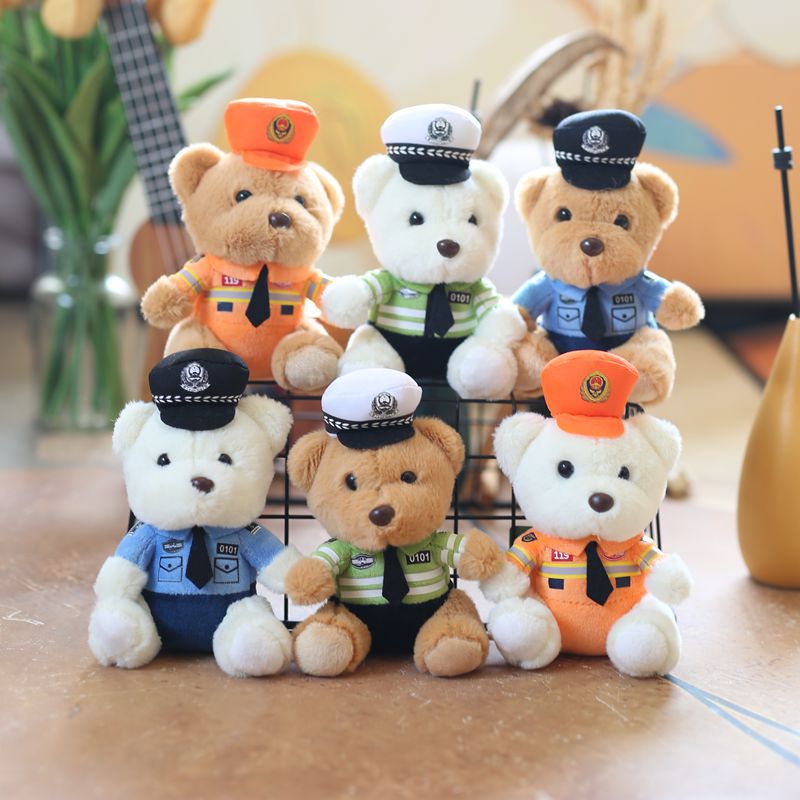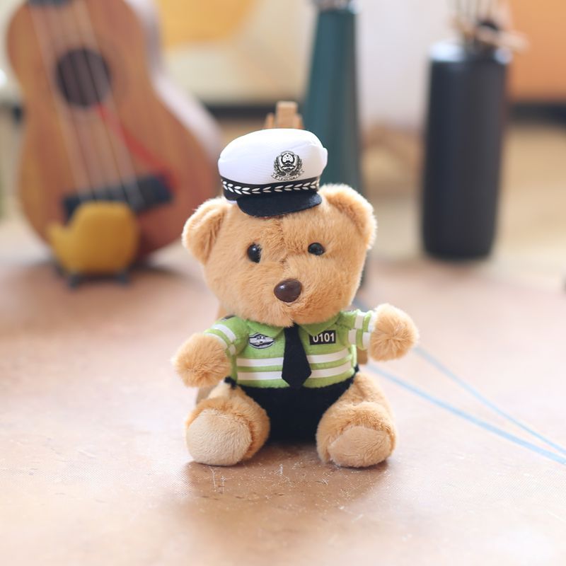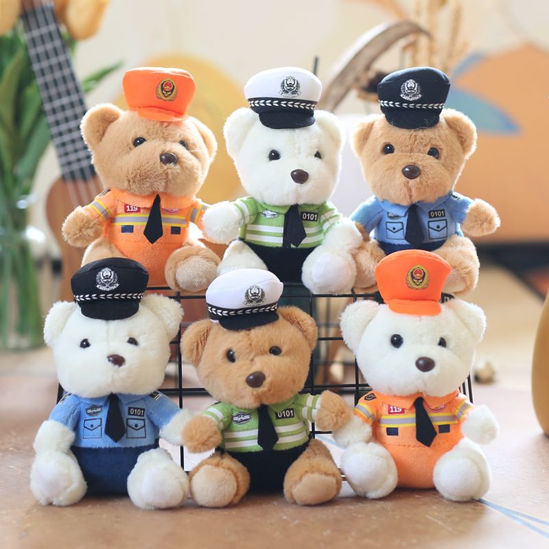 인터넷 인기있는 귀여운 교통 경찰 곰 펜던트 봉제 장난감 인형 소방 경찰 가방 펜던트 키 체인 인형스토어 가기