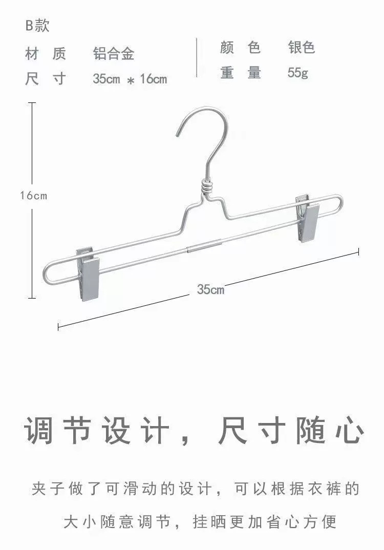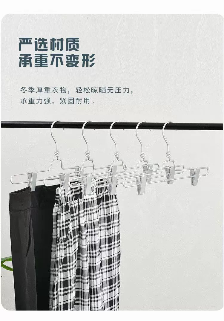 인쇄되지 않은 알루미늄 옷걸이 금속 건조 바지 랙 팬츠 클립 원활한 알루미늄 합금 옷걸이 두꺼운 미끄럼 방지 의류 지원 공장 직접스토어 가기