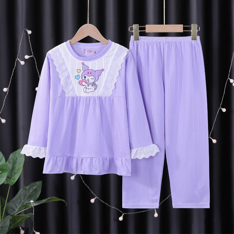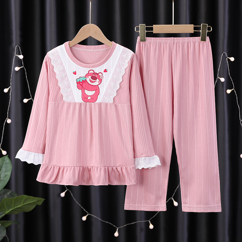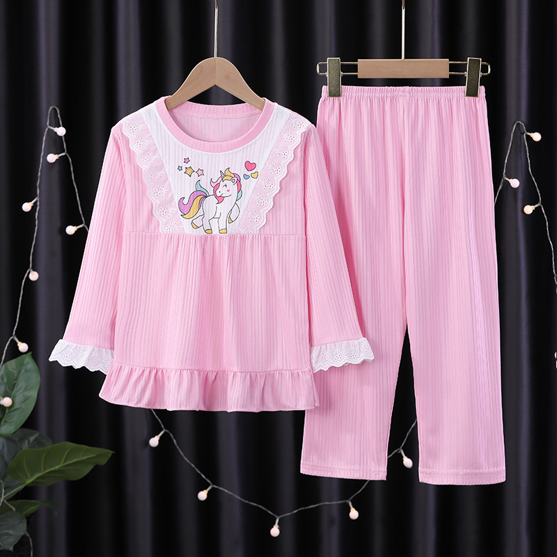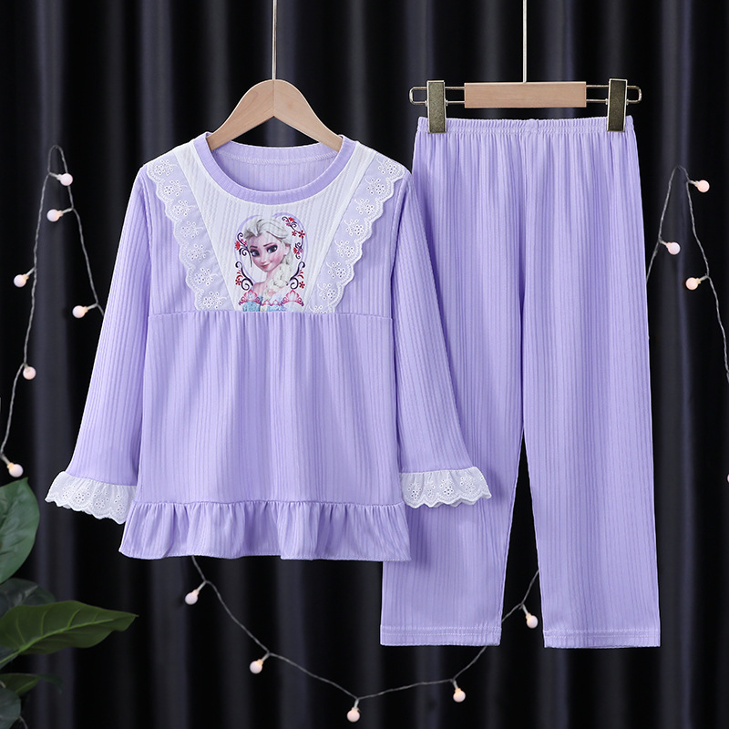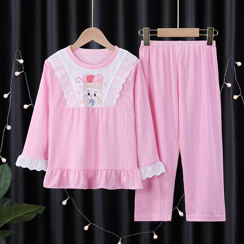 어린이 잠옷 소녀의 봄과 가을 긴 소매 얇은 작은 소녀의 중 큰 어린이 공주 스타일 신선한 홈 의류 세트