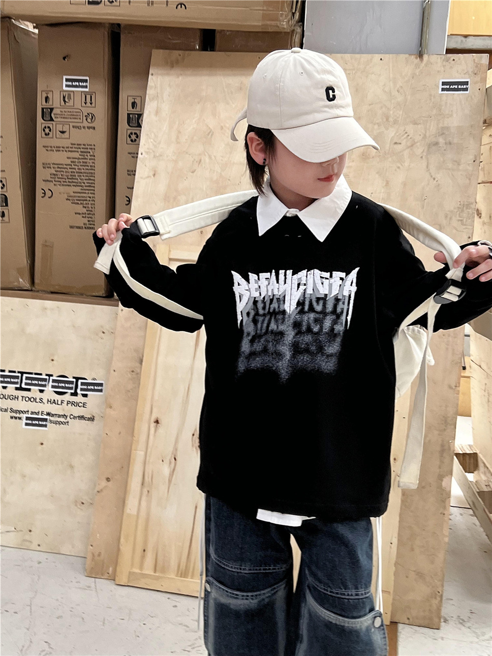 8107 어린이 가을 긴 소매 3 차원 편지 속보 소년베이스 셔츠스토어 가기
