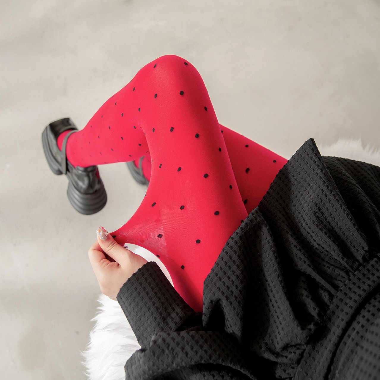 가을과 겨울 패션 뜨거운 소녀 바람 무광택 벨벳 올해 크리스마스 웨이브 도트 레드 실크 스타킹 팬티 스타킹 여성 동향