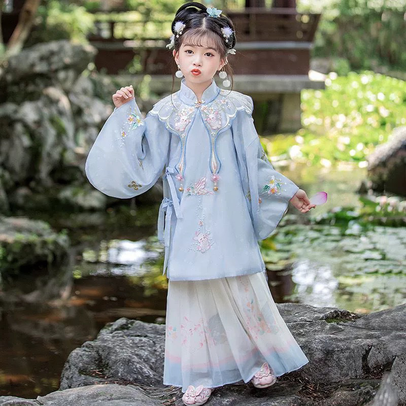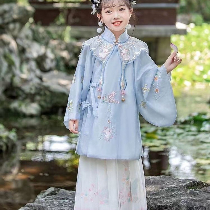한푸 소녀 중국 스타일 당나라 세트 고대 스타일 슈퍼 요정 고대 세트 명나라 스타일 큰 소매 셔츠 세트 봄과 가을 어린 소녀 원피스