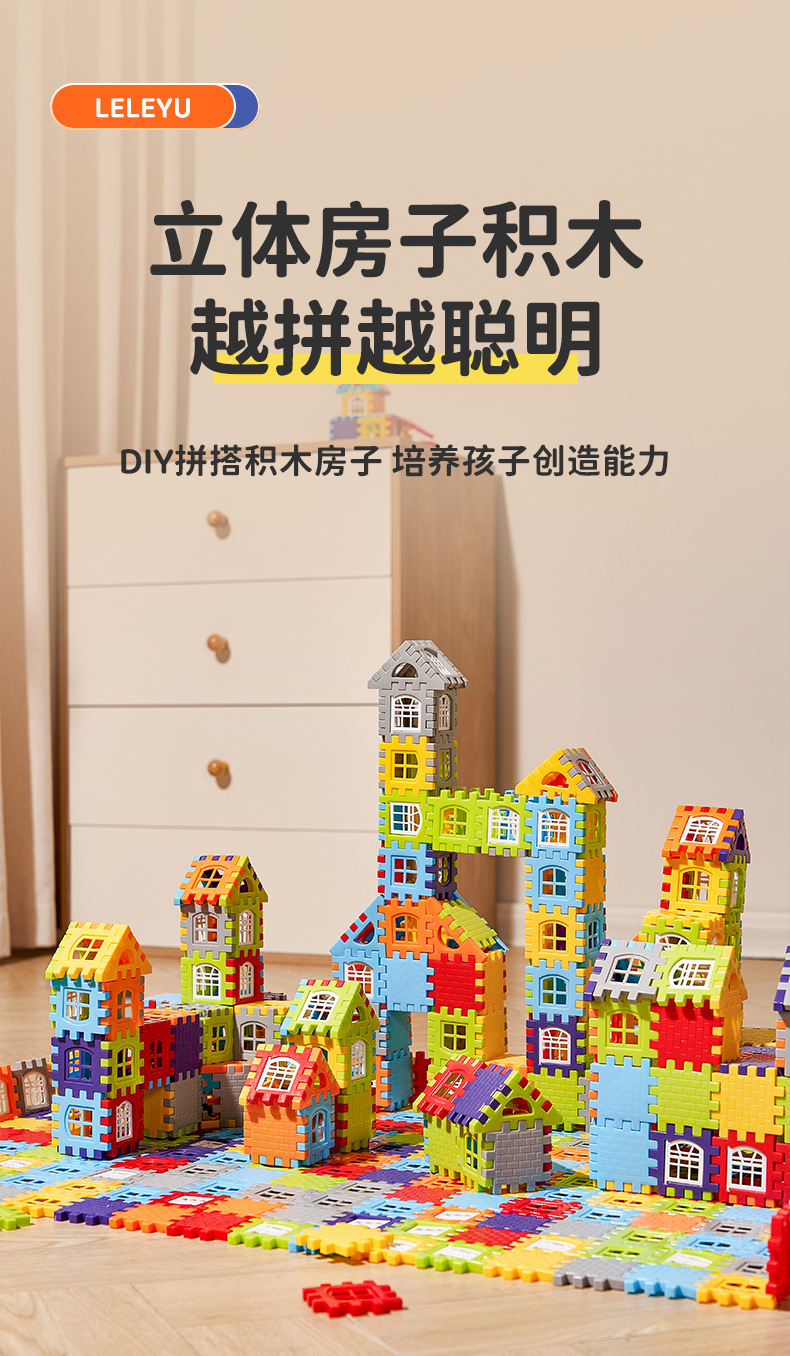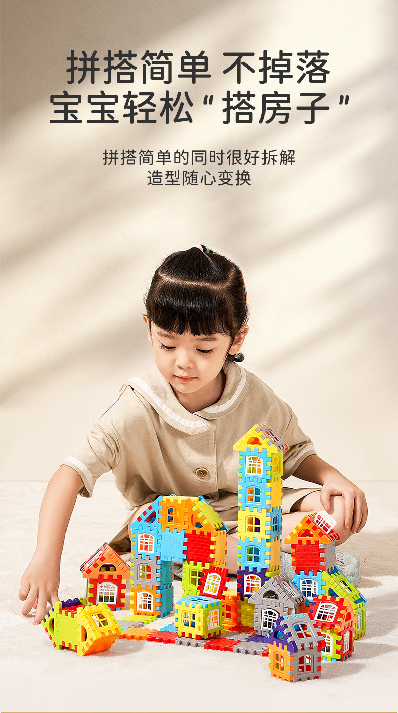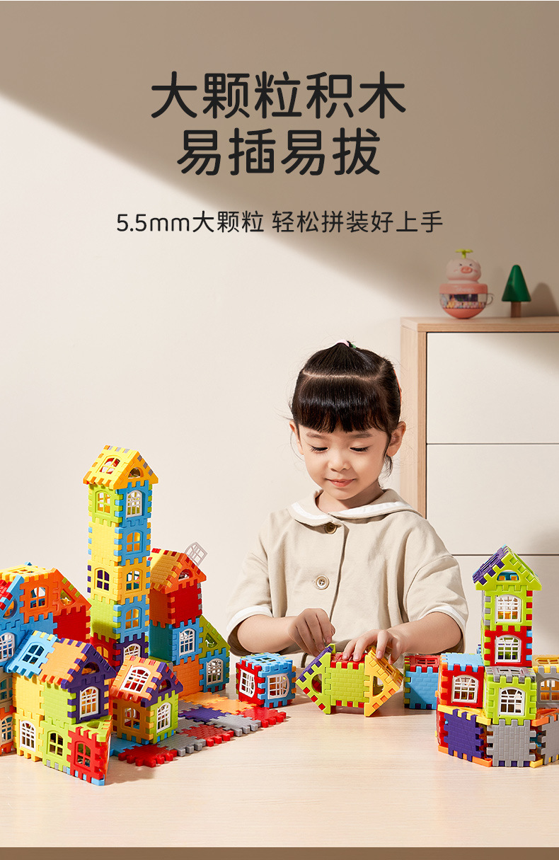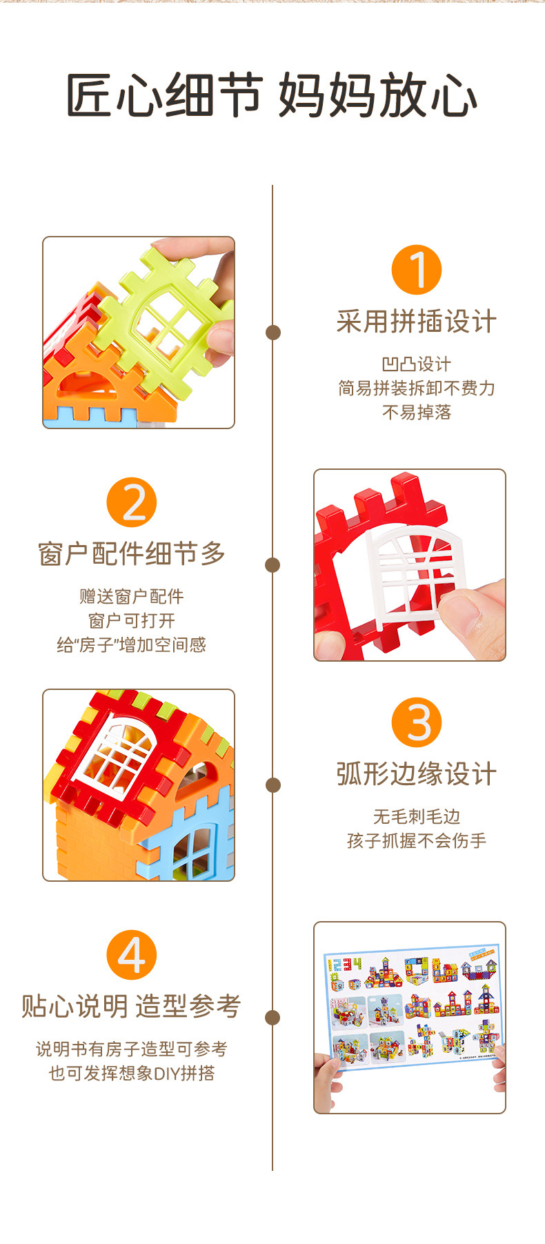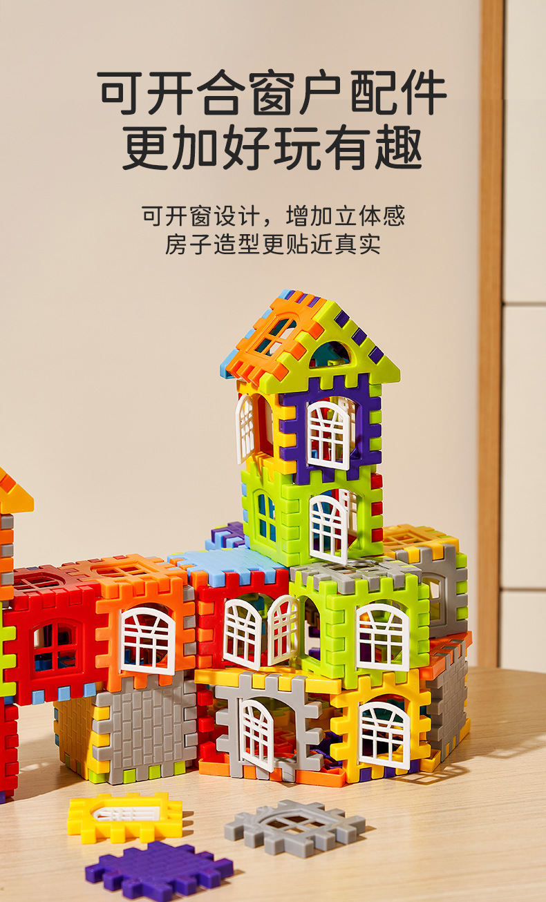 어린이 대형 하우스 빌딩 블록 조립 장난감 퍼즐 큰 입자 광장 벽 창 모델 퍼즐 3-6 세스토어 가기