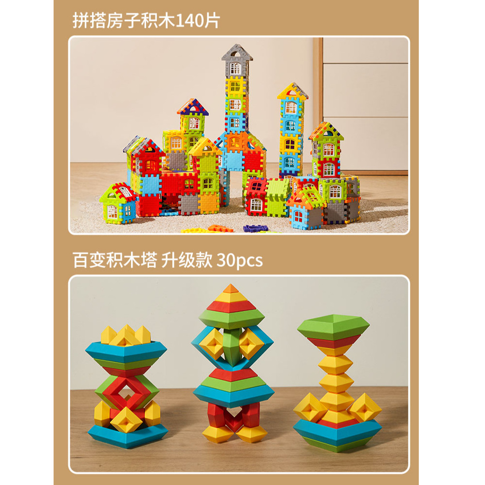 • 초대형 사이즈 140개 + 고급 30개 - 다양한 빌딩 블록 타워 [컬러 박스]