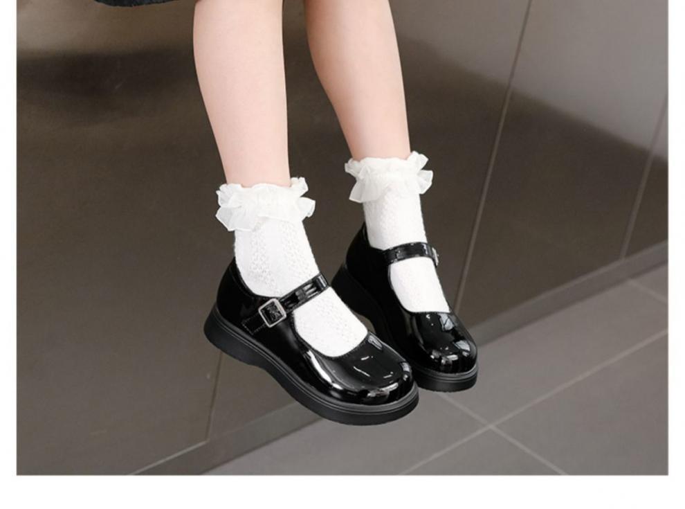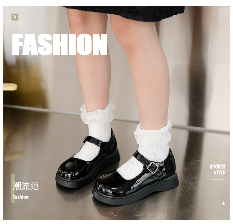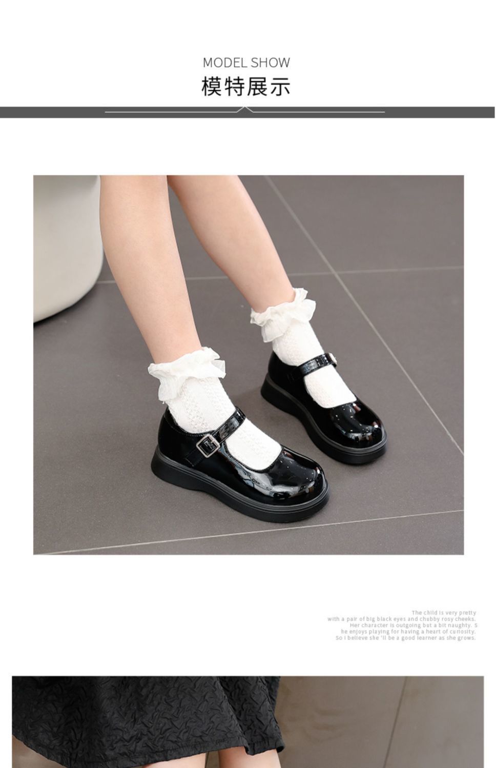 소녀를위한 검은 작은 가죽 신발 2024 봄과 가을 새로운 도착 작은 소녀 공주 신발 메리 제인 어린이 신발 공연