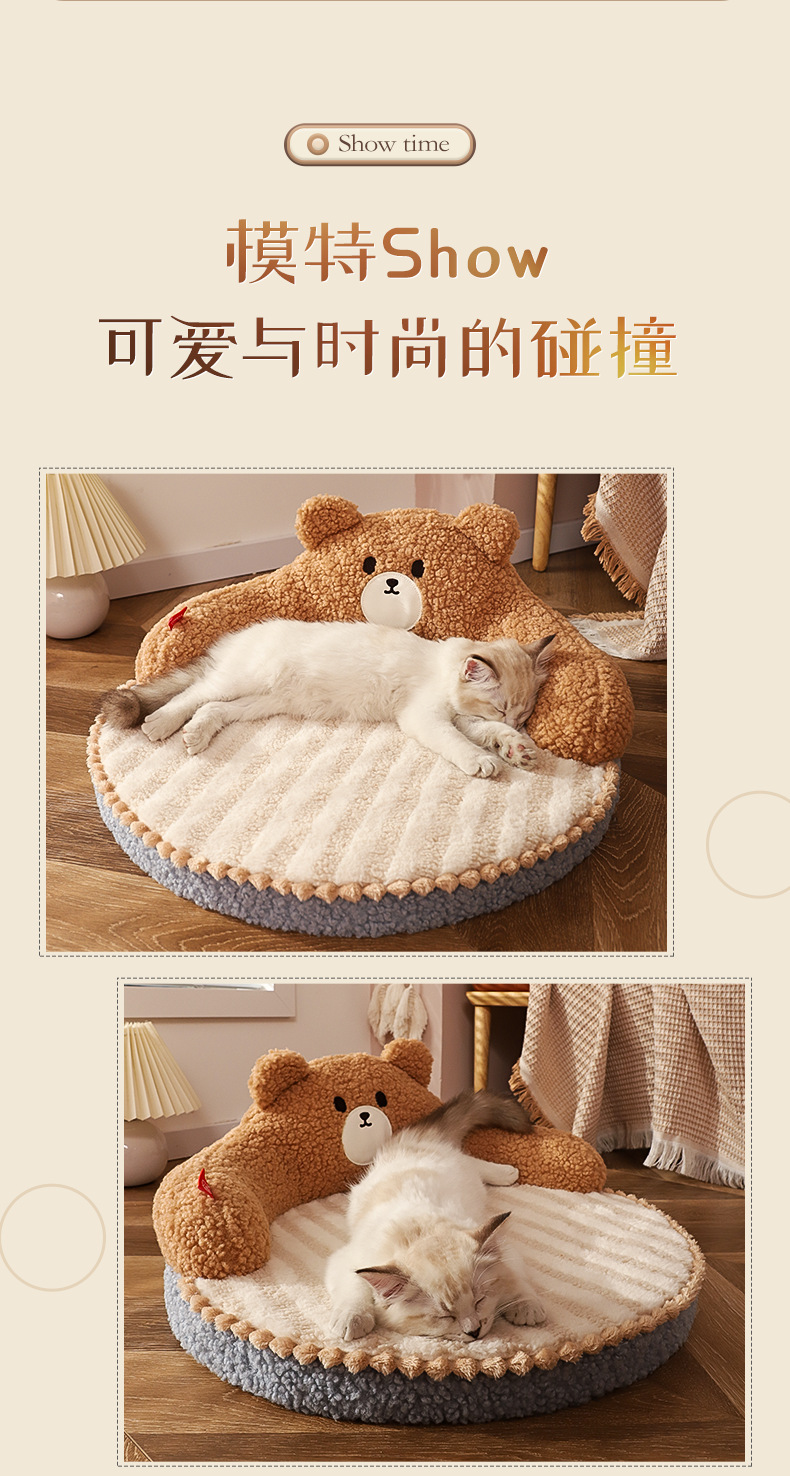 • 등받이가 높은 사계절 포옹 고양이 둥지 - 곰 스타일