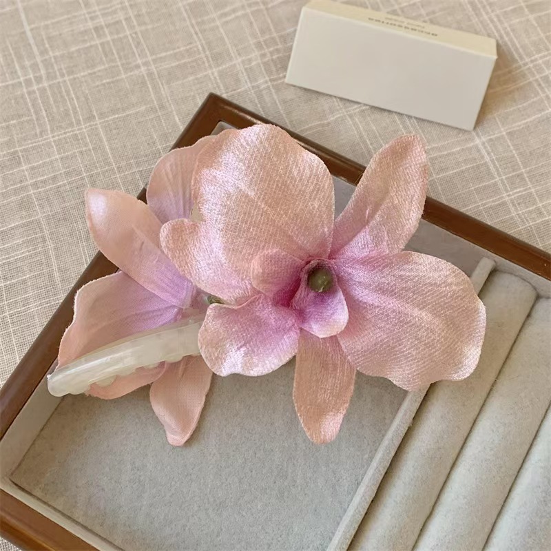 새로운 3 차원 백합 꽃 우아한 잡아 클립 인공 꽃 머리핀 여성 틈새 꽃 상어 분위기 헤어 액세서리