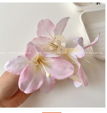 새로운 3 차원 백합 꽃 우아한 잡아 클립 인공 꽃 머리핀 여성 틈새 꽃 상어 분위기 헤어 액세서리스토어 가기