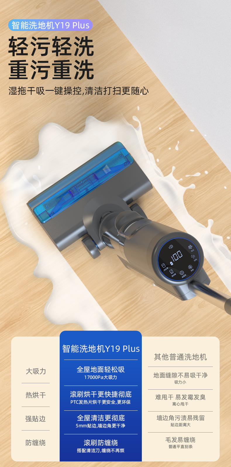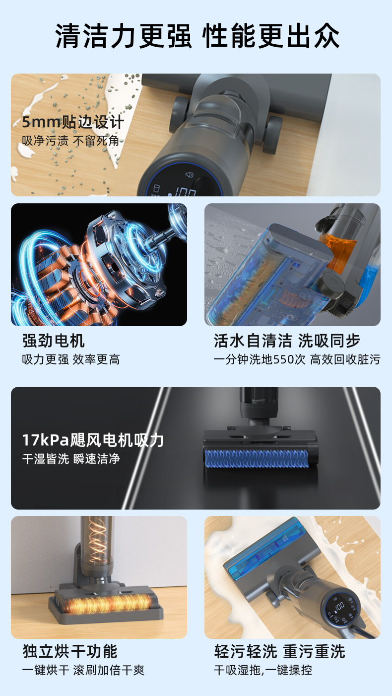 바닥 수세미 가정용 17KPA 진공 청소기 지능형 흡입, 걸레질 및 청소 통합 전기 걸레질 기계 습식 및 건식 청소 기계